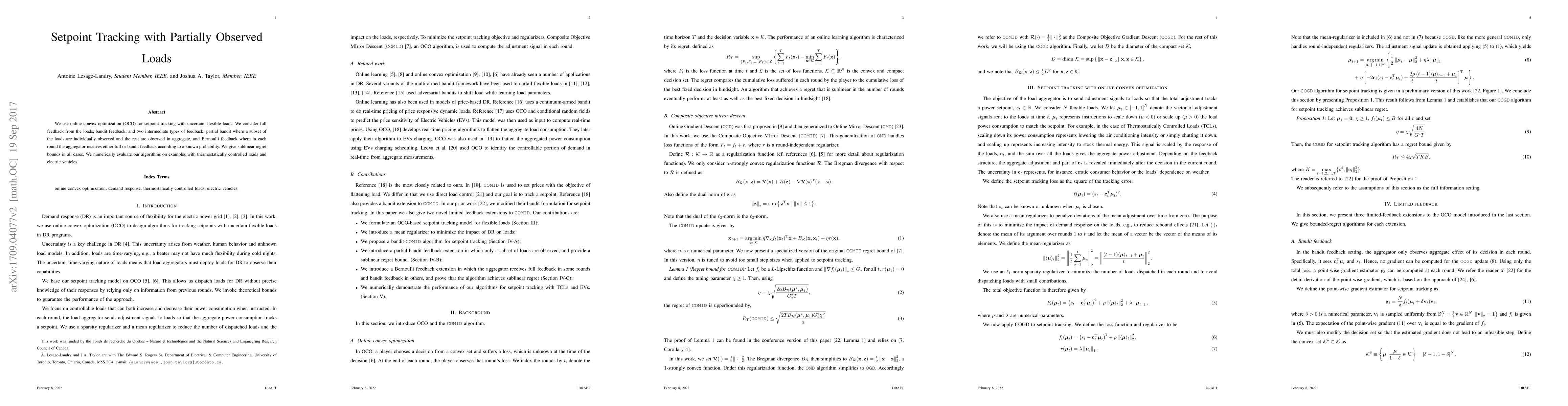 Researchers used online convex optimization to track setpoints for uncertain flexible loads with various feedback types, achieving sublinear regret bounds in all cases. The study also explored practical applications on thermostatically controlled loads and electric vehicles.