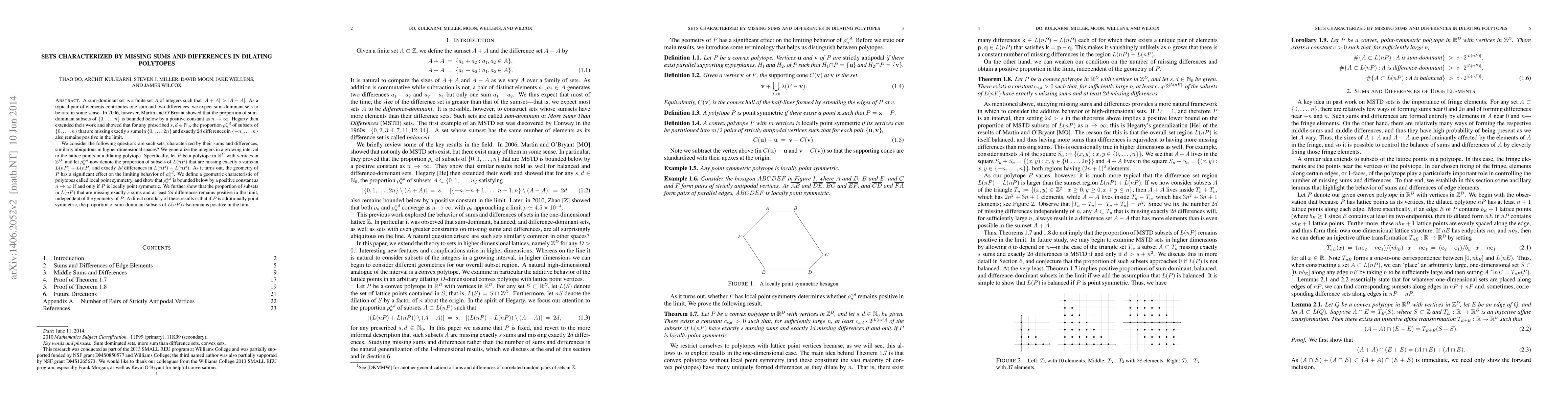 A sum-dominant set is a finite set $A$ of integers such that $|A+A| > |A-A|$. As a typical pair of elements contributes one sum and two differences, we expect sum-dominant sets to be rare in some sense. In 2006, however, Martin and O'Bryant showed that the proportion of sum-dominant subsets of $\{0,\dots,n\}$ is bounded below by a positive constant as $n\to\infty$. Hegarty then extended their work and showed that for any prescribed $s,d\in\mathbb{N}_0$, the proportion $\rho^{s,d}_n$ of subsets of $\{0,\dots,n\}$ that are missing exactly $s$ sums in $\{0,\dots,2n\}$ and exactly $2d$ differences in $\{-n,\dots,n\}$ also remains positive in the limit. We consider the following question: are such sets, characterized by their sums and differences, similarly ubiquitous in higher dimensional spaces? We generalize the integers in a growing interval to the lattice points in a dilating polytope. Specifically, let $P$ be a polytope in $\mathbb{R}^D$ with vertices in $\mathbb{Z}^D$, and let $\rho_n^{s,d}$ now denote the proportion of subsets of $L(nP)$ that are missing exactly $s$ sums in $L(nP)+L(nP)$ and exactly $2d$ differences in $L(nP)-L(nP)$. As it turns out, the geometry of $P$ has a significant effect on the limiting behavior of $\rho_n^{s,d}$. We define a geometric characteristic of polytopes called local point symmetry, and show that $\rho_n^{s,d}$ is bounded below by a positive constant as $n\to\infty$ if and only if $P$ is locally point symmetric. We further show that the proportion of subsets in $L(nP)$ that are missing exactly $s$ sums and at least $2d$ differences remains positive in the limit, independent of the geometry of $P$. A direct corollary of these results is that if $P$ is additionally point symmetric, the proportion of sum-dominant subsets of $L(nP)$ also remains positive in the limit.