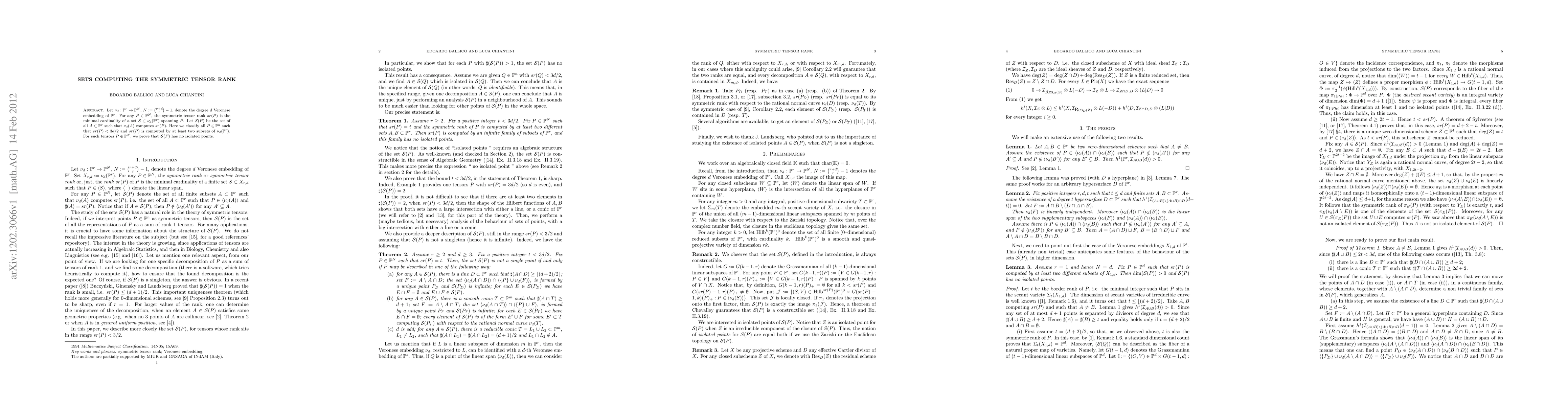 Let n_d denote the degree d Veronese embedding of a projective space P^r. For any symmetric tensor P, the 'symmetric tensor rank' sr(P) is the minimal cardinality of a subset A of P^r, such that n_d(A) spans P. Let S(P) be the space of all subsets A of P^r, such that n_d(A) computes sr(P). Here we classify all P in P^n such that sr(P) < 3d/2 and sr(P) is computed by at least two subsets. For such tensors P, we prove that S(P) has no isolated points.