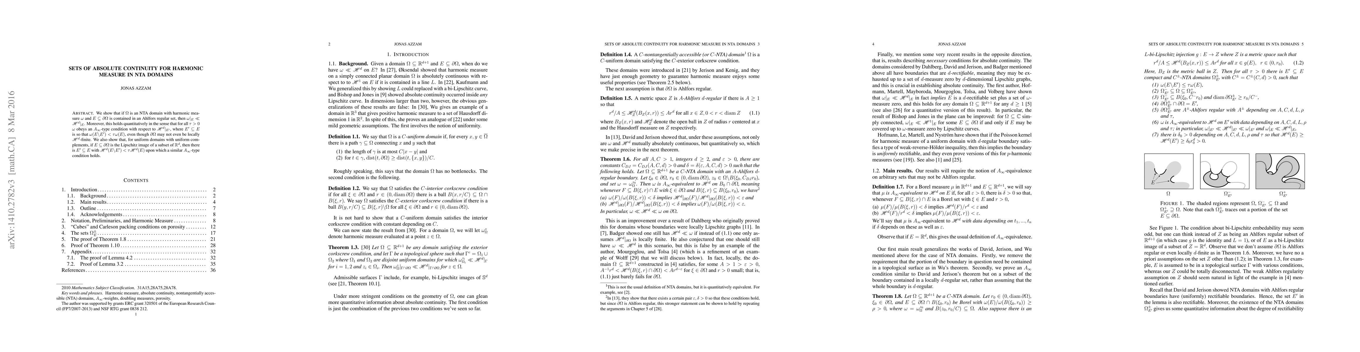 This paper demonstrates that for NTA domains, the harmonic measure is absolutely continuous with respect to the Hausdorff measure on certain subsets of the boundary, even when the boundary is not locally finite. It also establishes quantitative $A_{\infty}$-type conditions for these measures under specific conditions.