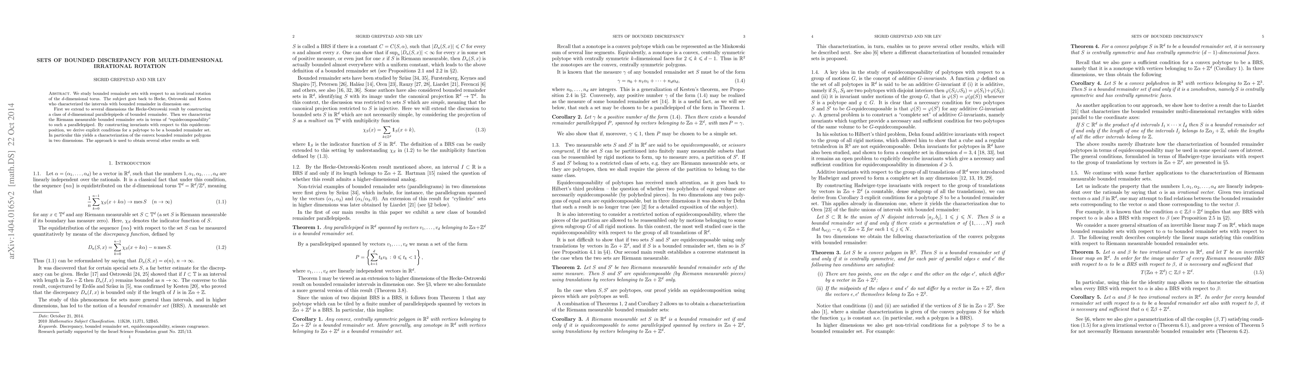 We study bounded remainder sets with respect to an irrational rotation of the $d$-dimensional torus. The subject goes back to Hecke, Ostrowski and Kesten who characterized the intervals with bounded remainder in dimension one. First we extend to several dimensions the Hecke-Ostrowski result by constructing a class of $d$-dimensional parallelepipeds of bounded remainder. Then we characterize the Riemann measurable bounded remainder sets in terms of "equidecomposability" to such a parallelepiped. By constructing invariants with respect to this equidecomposition, we derive explicit conditions for a polytope to be a bounded remainder set. In particular this yields a characterization of the convex bounded remainder polygons in two dimensions. The approach is used to obtain several other results as well.