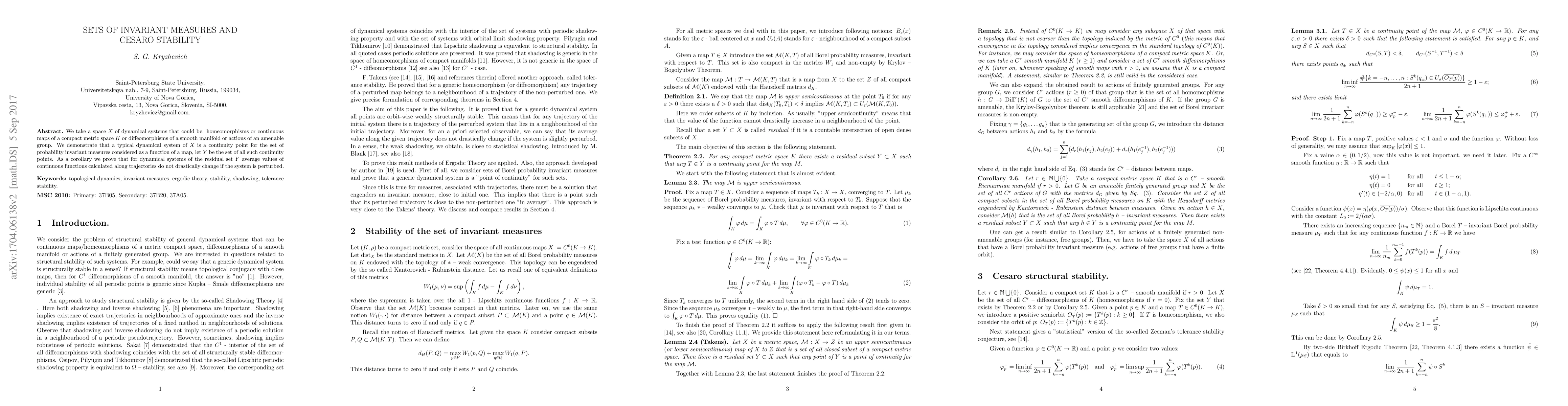 Sets of invariant measures are considered for continuous maps of a metric compact set. We take Kantorovich metric to calculate distance between measures and Hausdorff metrics to calculate distance between compact sets. Consider the function that makes correspondence between a continuous map and the set of all its Borel probability invariant measures. We demonstrate that a typical map is a continuity point of that function. Using approaches of Takens' tolerance stability theory we provide some corollaries that demonstrate that for a typical map points are structurally stable in a statistical sense.