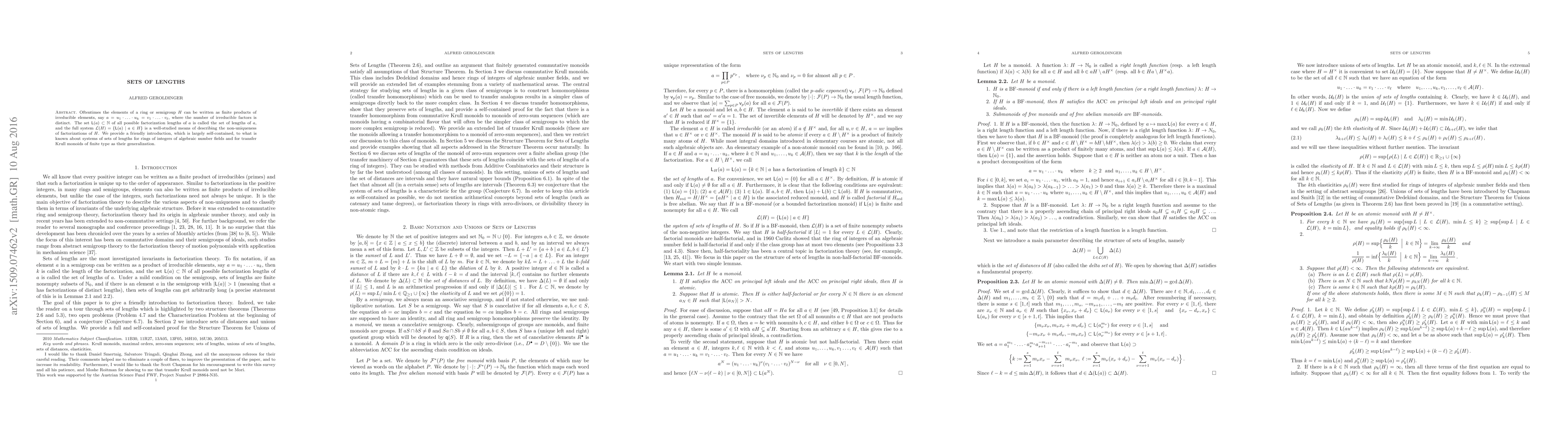 Oftentimes the elements of a ring or semigroup $H$ can be written as finite products of irreducible elements, say $a=u_1 \cdot \ldots \cdot u_k = v_1 \cdot \ldots \cdot v_{\ell}$, where the number of irreducible factors is distinct. The set $\mathsf L (a) \subset \mathbb N$ of all possible factorization lengths of $a$ is called the set of lengths of $a$, and the full system $\mathcal L (H) = \{ \mathsf L (a) \mid a \in H \}$ is a well-studied means of describing the non-uniqueness of factorizations of $H$. We provide a friendly introduction, which is largely self-contained, to what is known about systems of sets of lengths for rings of integers of algebraic number fields and for transfer Krull monoids of finite type as their generalization.