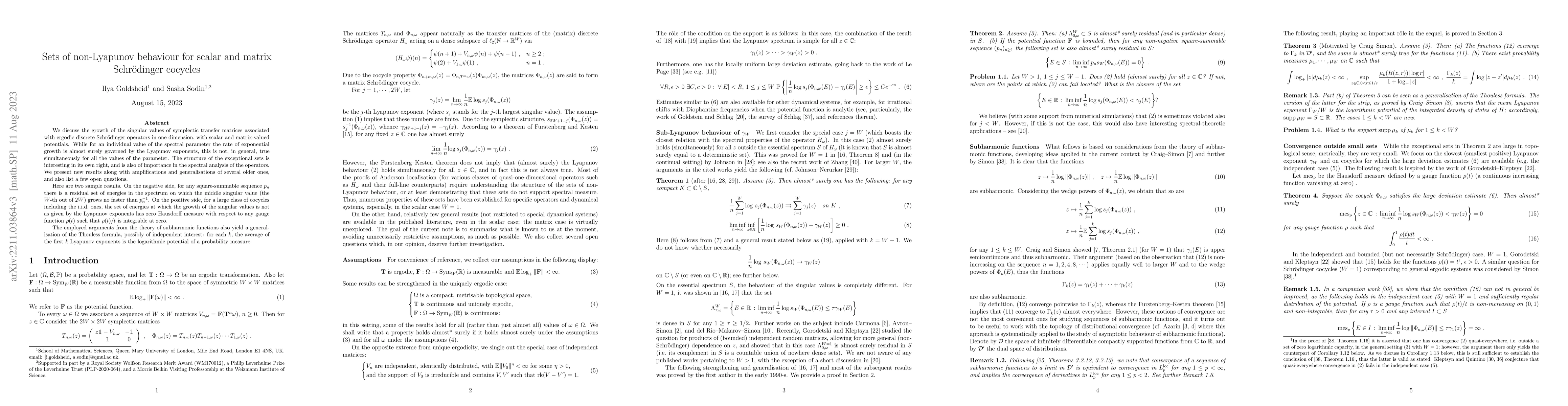 This paper investigates the singular value growth of symplectic transfer matrices linked to ergodic one-dimensional Schrödinger cocycles with scalar and matrix potentials. It reveals that while individual spectral parameter values are governed by Lyapunov exponents, not all values follow this rule, highlighting the structure of exceptional sets. The study presents new results and generalizations, showing that for any square-summable sequence, there exists a residual set of energies where singular value growth is limited, while for many cocycle types, the set of non-Lyapunov-governed energies has zero Hausdorff measure.