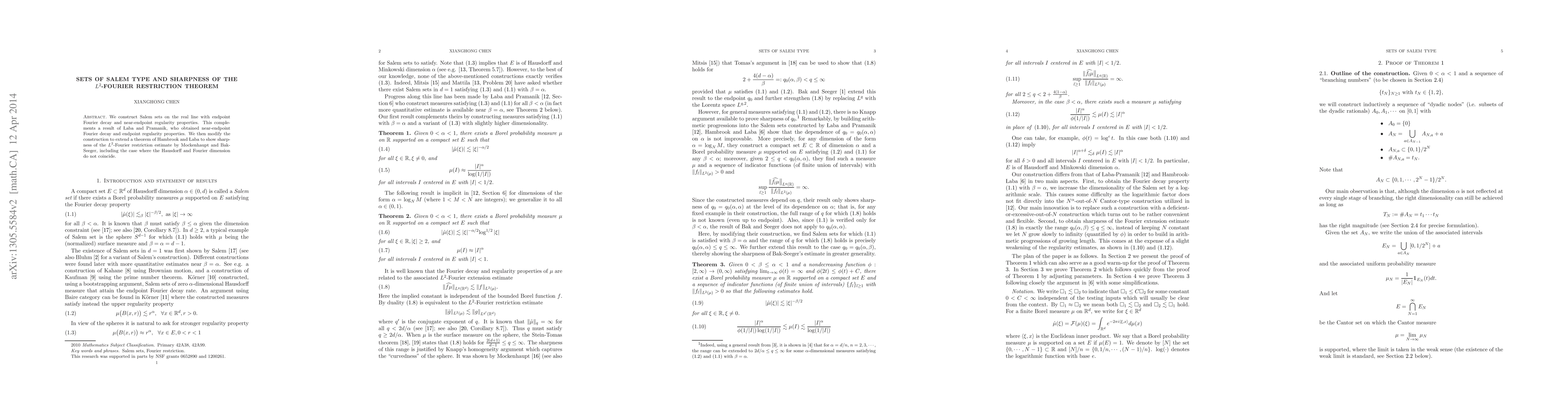 This paper constructs Salem sets with specific Fourier decay and regularity properties, complementing previous results, and extends a theorem to demonstrate the sharpness of the $L^2$-Fourier restriction estimate, even when Hausdorff and Fourier dimensions differ.