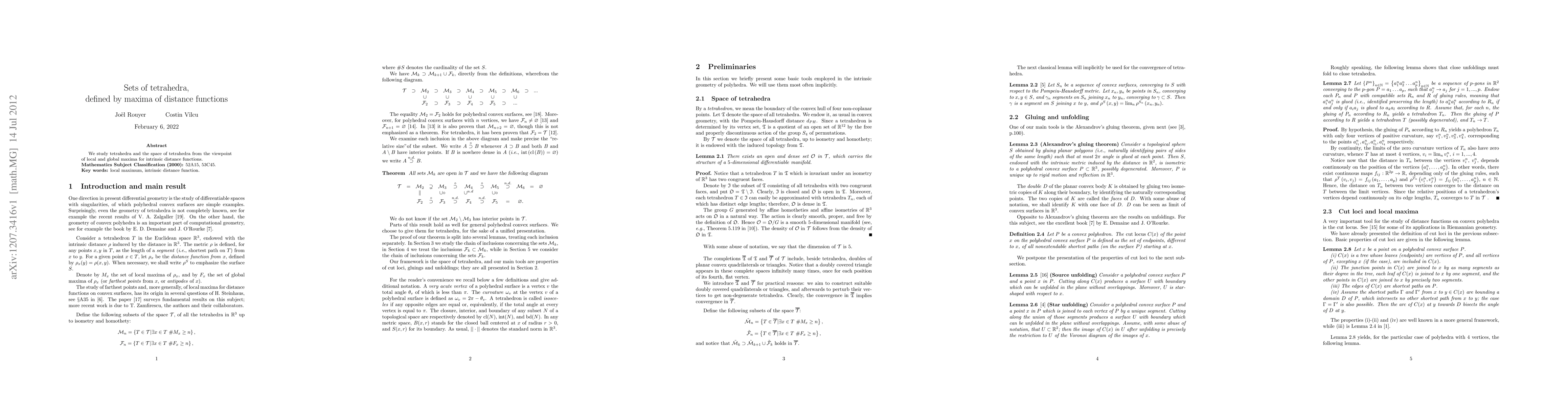 We study tetrahedra and the space of tetrahedra from the viewpoint of local and global maxima for intrinsic distance functions.