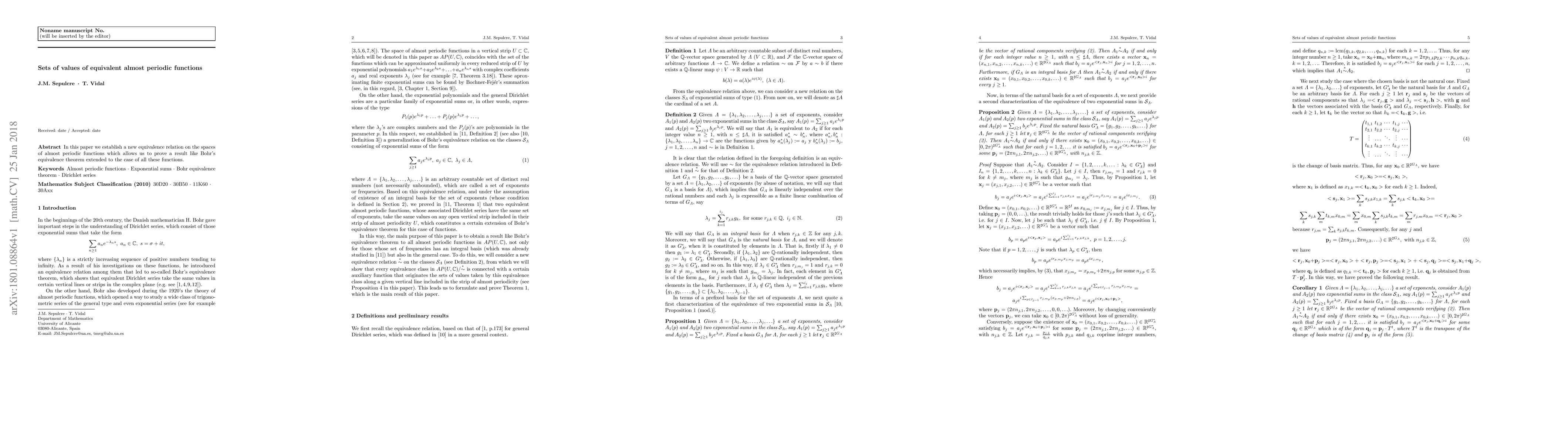 In this paper we establish a new equivalence relation on the spaces of almost periodic functions which allows us to prove a result like Bohr's equivalence theorem extended to the case of all these functions.