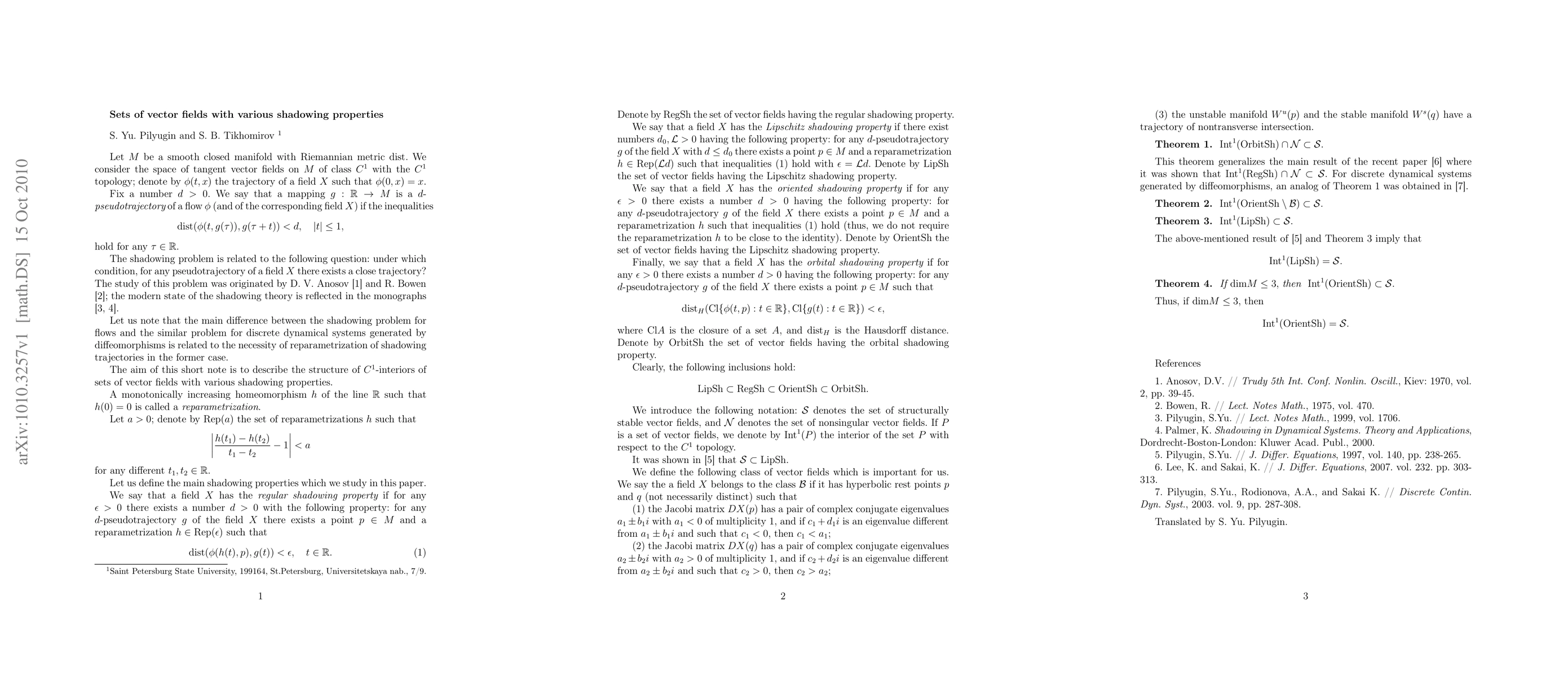 Summary: This paper investigates the $C^1$-interiors of sets of smooth vector fields characterized by shadowing properties of pseudotrajectories, demonstrating that these interiors contain structurally stable fields for specific classes of trajectory reparametrizations.