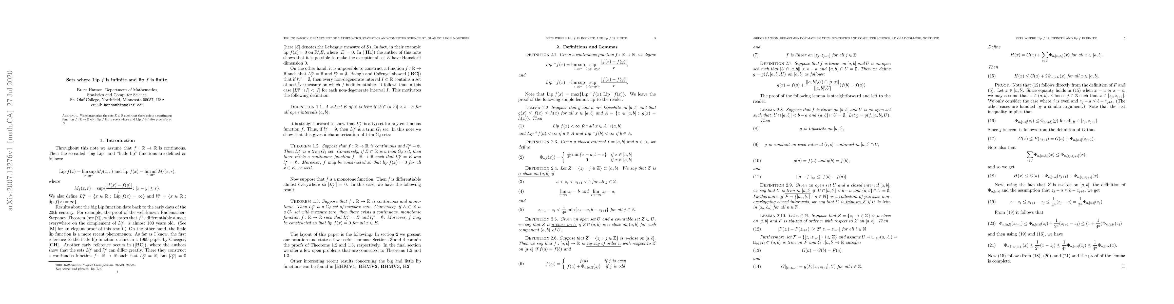 We characterize the subsets $E \subset \mathbb{R}$ for which there exists a continuous real valued function $f: \mathbb{R}\to\mathbb{R}$ such that lip $f$ is finite everywhere and Lip $f$ is infinite exactly on $E$.