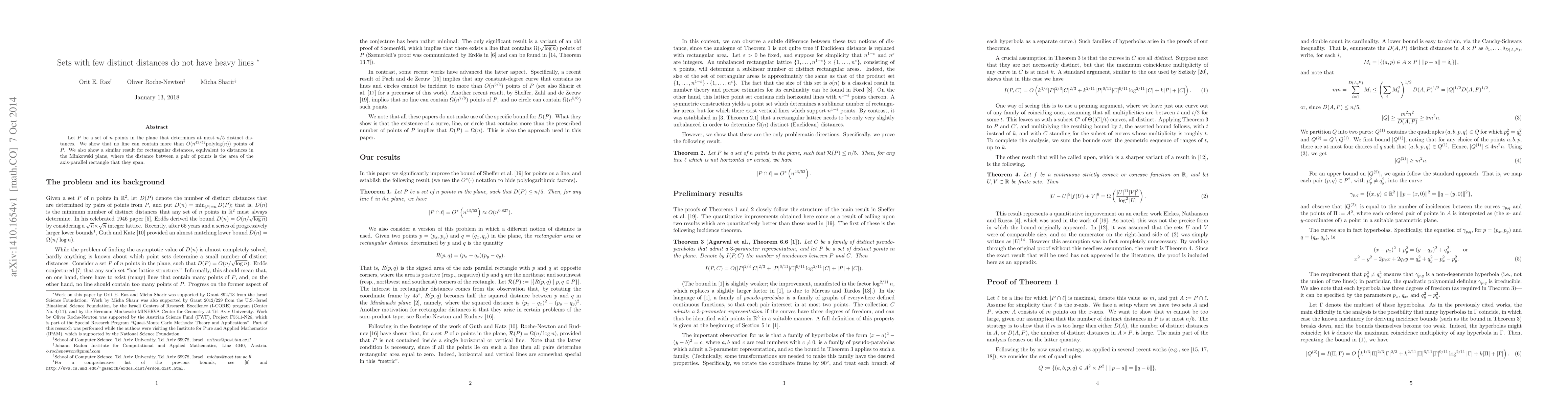 This paper demonstrates that a set of $n$ points in the plane with at most $n/5$ distinct distances cannot have a line containing more than $O(n^{43/52}{\rm polylog}(n))$ points. A similar result is established for rectangular distances in the Minkowski plane.