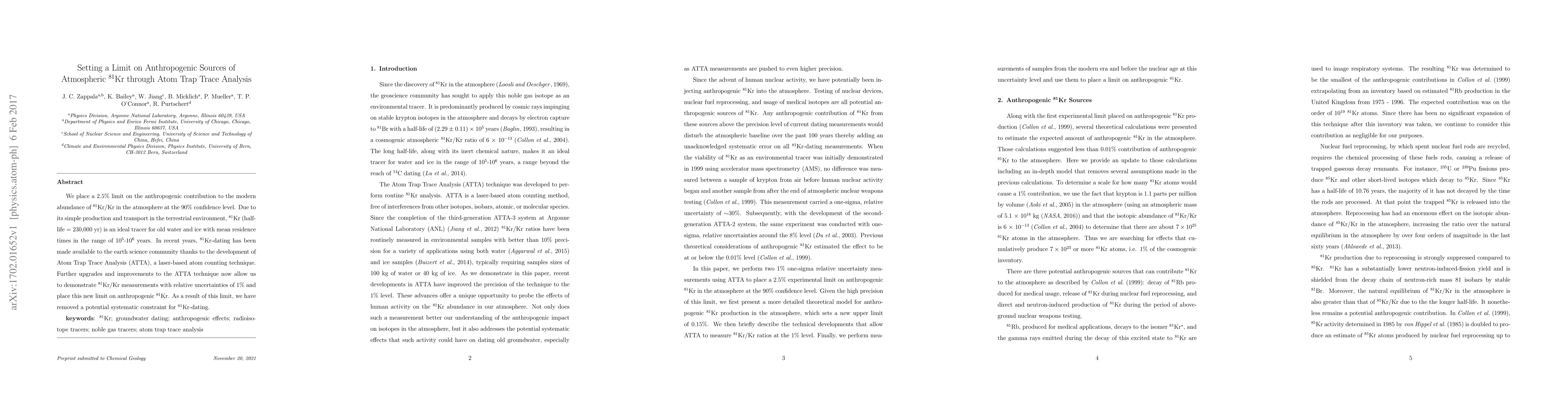 We place a 2.5% limit on the anthropogenic contribution to the modern abundance of 81Kr/Kr in the atmosphere at the 90% confidence level. Due to its simple production and transport in the terrestrial environment, 81Kr (halflife = 230,000 yr) is an ideal tracer for old water and ice with mean residence times in the range of 10^5-10^6 years. In recent years, 81Kr-dating has been made available to the earth science community thanks to the development of Atom Trap Trace Analysis (ATTA), a laser-based atom counting technique. Further upgrades and improvements to the ATTA technique now allow us to demonstrate 81Kr/Kr measurements with relative uncertainties of 1% and place this new limit on anthropogenic 81Kr. As a result of this limit, we have removed a potential systematic constraint for 81Kr-dating.