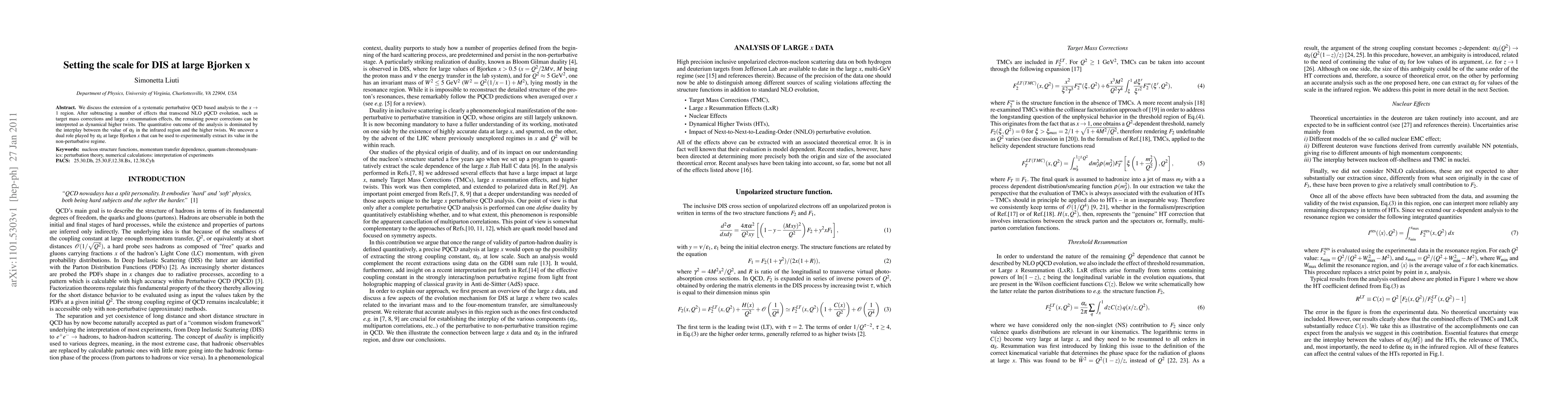 This paper extends a perturbative QCD analysis to the large Bjorken x region, identifying power corrections as dynamical higher twists. The analysis reveals a dual role for alpha_S at large x, which can be utilized to experimentally determine its non-perturbative value.