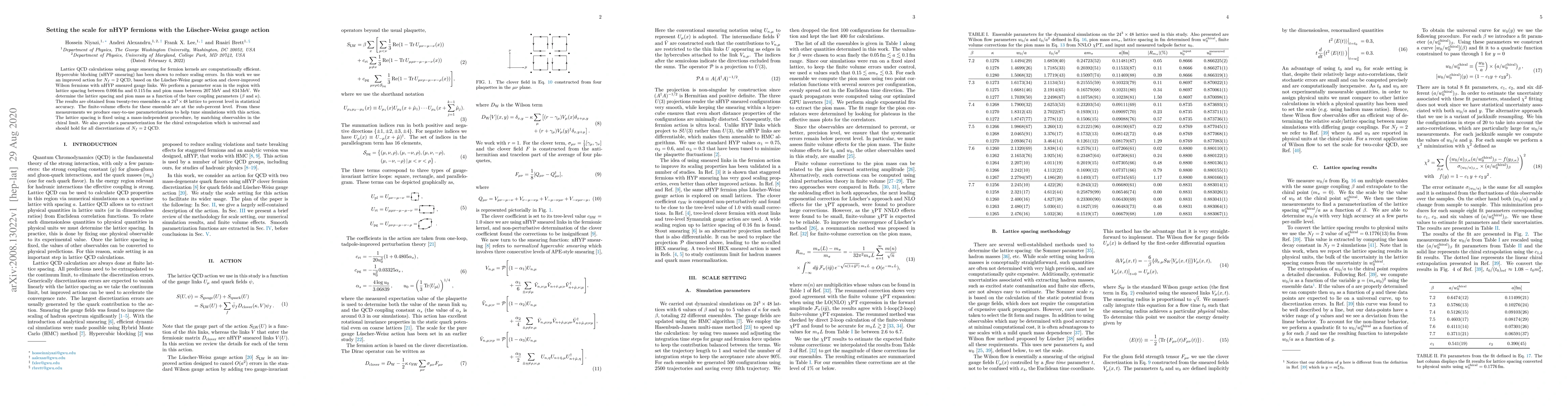 Lattice QCD calculations using gauge smearing for fermion kernels are computationally efficient. Hypercubic blocking (nHYP smearing) has been shown to reduce scaling errors. In this work we use an improved action for $N_f=2$ QCD, based on the L\"uscher-Weisz gauge action and clover-improved Wilson fermions with nHYP smeared gauge links. We perform a parameter scan in the region with lattice spacing between $0.066 \mathop{\hbox{fm}}$ and $0.115 \mathop{\hbox{fm}}$ and pion mass between $207 \mathop{\hbox{MeV}}$ and $834 \mathop{\hbox{MeV}}$. We determine the lattice spacing and pion mass as a function of the bare coupling parameters ($\beta$ and $\kappa$). The results are obtained from twenty-two ensembles on a $24^3\times 48$ lattice to percent level in statistical accuracy. The finite-volume effects for these ensemble are at the sub-percent level. From these measurements we produce easy-to-use parameterizations to help tune simulations with this action. The lattice spacing is fixed using a mass-independent procedure, by matching observables in the chiral limit. We also provide a parameterization for the chiral extrapolation which is universal and should hold for all discretizations of $N_f=2$ QCD.