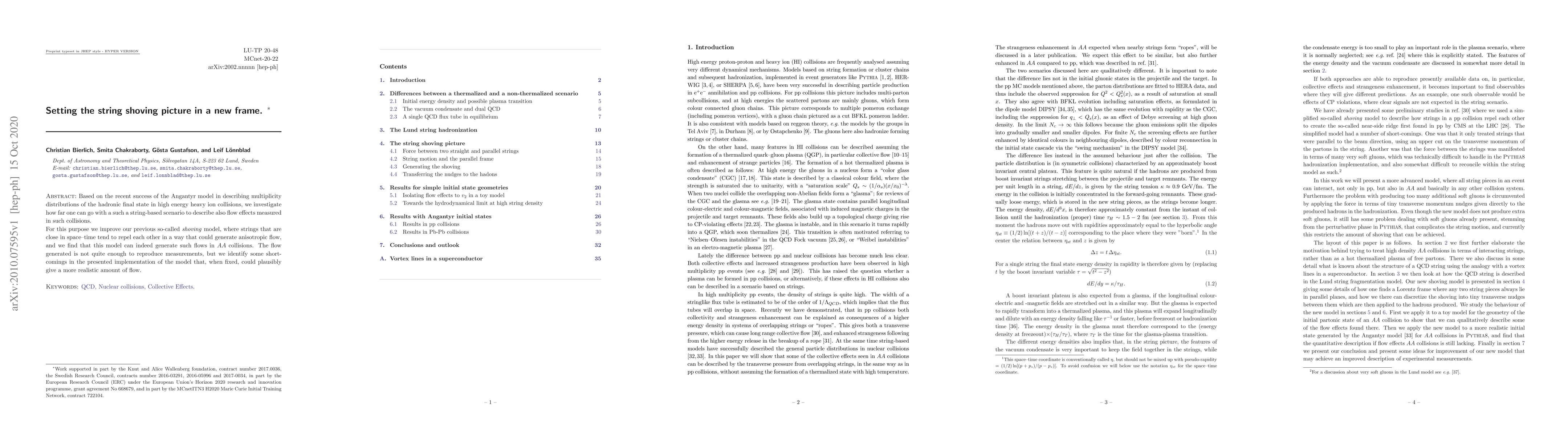 Based on the recent success of the \angantyr model in describing multiplicity distributions of the hadronic final state in high energy heavy ion collisions, we investigate how far one can go with a such a string-based scenario to describe also flow effects measured in such collisions. For this purpose we improve our previous so-called \textit{shoving} model, where strings that are close in space--time tend to repel each other in a way that could generate anisotropic flow, and we find that this model can indeed generate such flows in \AA\ collisions. The flow generated is not quite enough to reproduce measurements, but we identify some short-comings in the presented implementation of the model that, when fixed, could plausibly give a more realistic amount of flow.