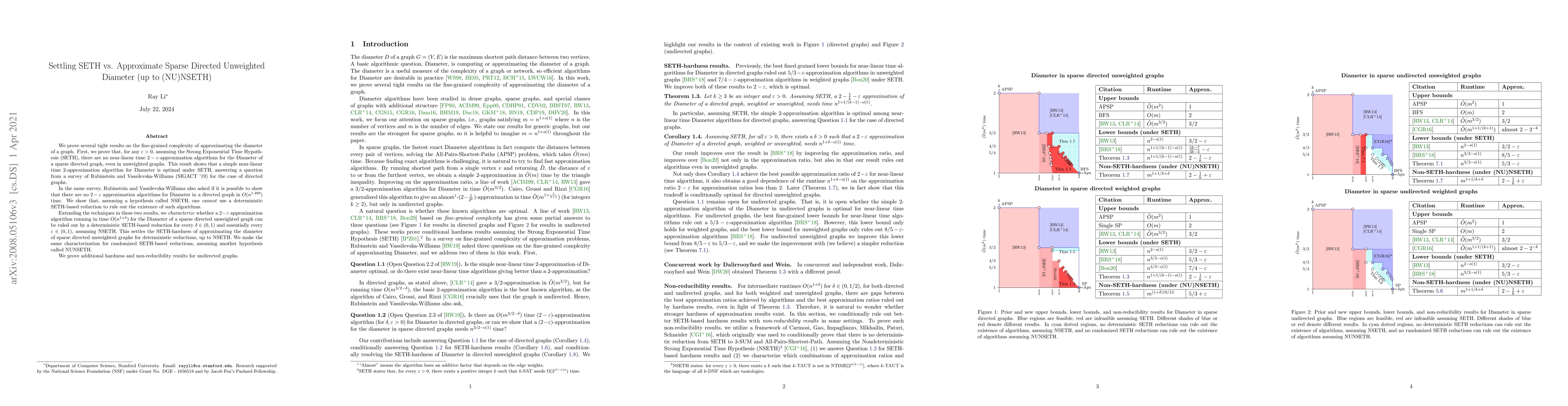 We prove several tight results on the fine-grained complexity of approximating the diameter of a graph. First, we prove that, for any $\varepsilon>0$, assuming the Strong Exponential Time Hypothesis (SETH), there are no near-linear time $2-\varepsilon$-approximation algorithms for the Diameter of a sparse directed graph, even in unweighted graphs. This result shows that a simple near-linear time 2-approximation algorithm for Diameter is optimal under SETH, answering a question from a survey of Rubinstein and Vassilevska-Williams (SIGACT '19) for the case of directed graphs. In the same survey, Rubinstein and Vassilevska-Williams also asked if it is possible to show that there are no $2-\varepsilon$ approximation algorithms for Diameter in a directed graph in $O(n^{1.499})$ time. We show that, assuming a hypothesis called NSETH, one cannot use a deterministic SETH-based reduction to rule out the existence of such algorithms. Extending the techniques in these two results, we characterize whether a $2-\varepsilon$ approximation algorithm running in time $O(n^{1+\delta})$ for the Diameter of a sparse directed unweighted graph can be ruled out by a deterministic SETH-based reduction for every $\delta\in(0,1)$ and essentially every $\varepsilon\in(0,1)$, assuming NSETH. This settles the SETH-hardness of approximating the diameter of sparse directed unweighted graphs for deterministic reductions, up to NSETH. We make the same characterization for randomized SETH-based reductions, assuming another hypothesis called NUNSETH. We prove additional hardness and non-reducibility results for undirected graphs.