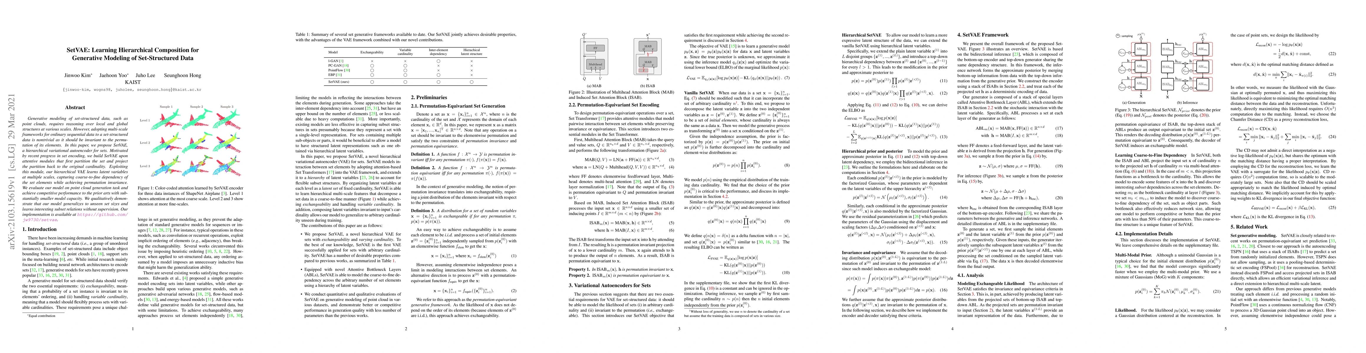 Researchers proposed SetVAE, a hierarchical VAE for generating set-structured data like point clouds, achieving competitive performance with smaller model capacity. The model captures coarse-to-fine dependency while maintaining permutation invariance.