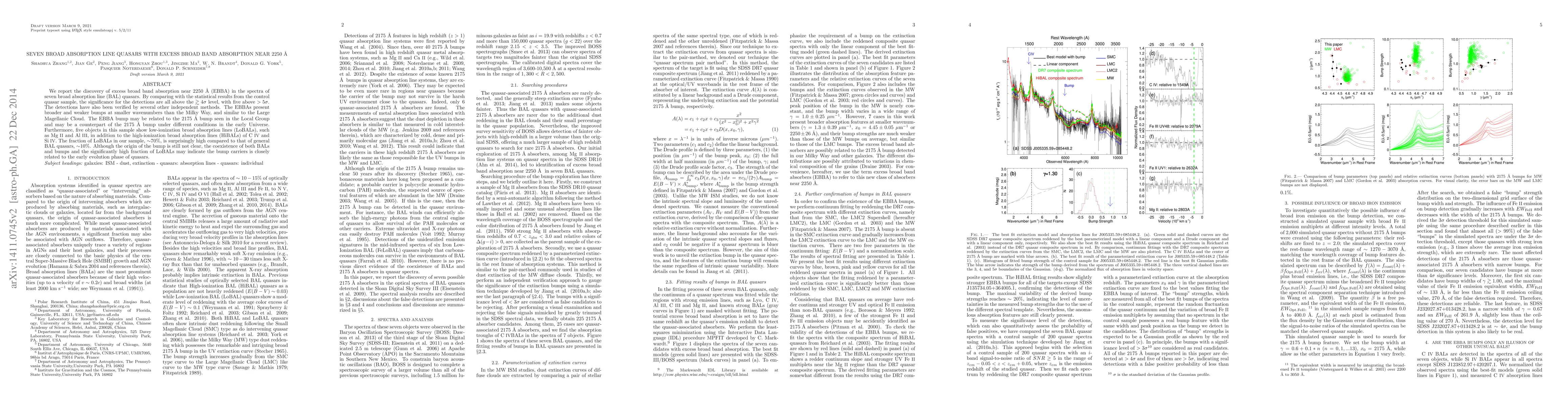 The research methodology involved selecting seven broad absorption line (BAL) quasars from the SDSS-III/BOSS DR10 quasar database using a specific MgII absorption identification method. The excess broad band absorption near 2250 Å (EBBA) was detected at high confidence levels (>4σ, five >5σ) by comparing with a control quasar sample and verifying with independent methods.