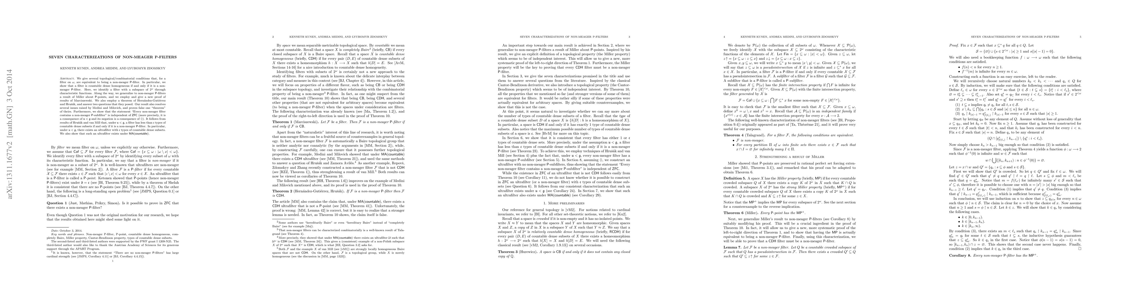 This paper provides several topological and combinatorial characterizations of non-meager P-filters, proving that a filter is countable dense homogeneous if and only if it is a non-meager P-filter. The study also resolves several open questions and proves the independence of a statement regarding non-meager filters from ZFC.