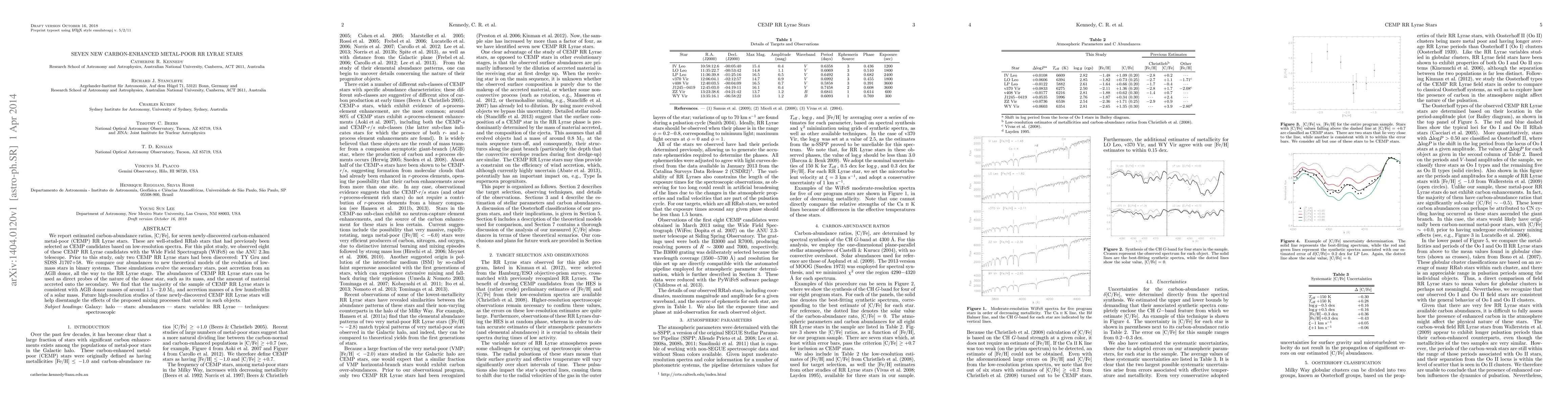 This study identifies seven new carbon-enhanced metal-poor (CEMP) RR Lyrae stars, expanding the known population and providing insights into their carbon abundances. The findings suggest these stars likely originated from secondary stars in binary systems that accreted material from an asymptotic giant branch (AGB) donor star of approximately 1.5-2.0 solar masses.