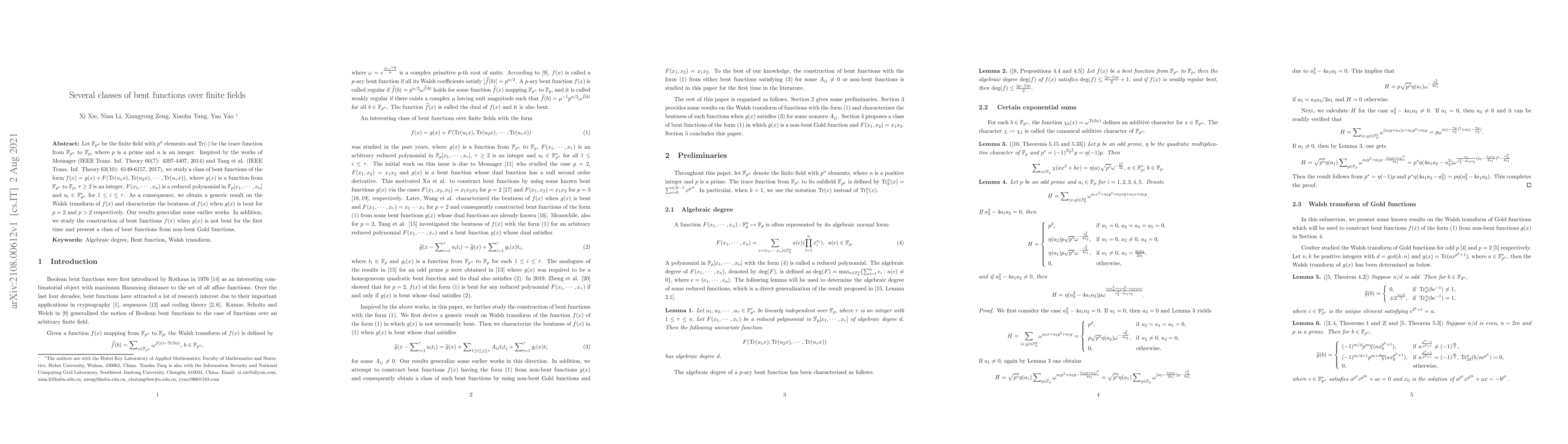 Let $\mathbb{F}_{p^{n}}$ be the finite field with $p^n$ elements and $\operatorname{Tr}(\cdot)$ be the trace function from $\mathbb{F}_{p^{n}}$ to $\mathbb{F}_{p}$, where $p$ is a prime and $n$ is an integer. Inspired by the works of Mesnager (IEEE Trans. Inf. Theory 60(7): 4397-4407, 2014) and Tang et al. (IEEE Trans. Inf. Theory 63(10): 6149-6157, 2017), we study a class of bent functions of the form $f(x)=g(x)+F(\operatorname{Tr}(u_1x),\operatorname{Tr}(u_2x),\cdots,\operatorname{Tr}(u_{\tau}x))$, where $g(x)$ is a function from $\mathbb{F}_{p^{n}}$ to $\mathbb{F}_{p}$, $\tau\geq2$ is an integer, $F(x_1,\cdots,x_n)$ is a reduced polynomial in $\mathbb{F}_{p}[x_1,\cdots,x_n]$ and $u_i\in \mathbb{F}^{*}_{p^n}$ for $1\leq i \leq \tau$. As a consequence, we obtain a generic result on the Walsh transform of $f(x)$ and characterize the bentness of $f(x)$ when $g(x)$ is bent for $p=2$ and $p>2$ respectively. Our results generalize some earlier works. In addition, we study the construction of bent functions $f(x)$ when $g(x)$ is not bent for the first time and present a class of bent functions from non-bent Gold functions.