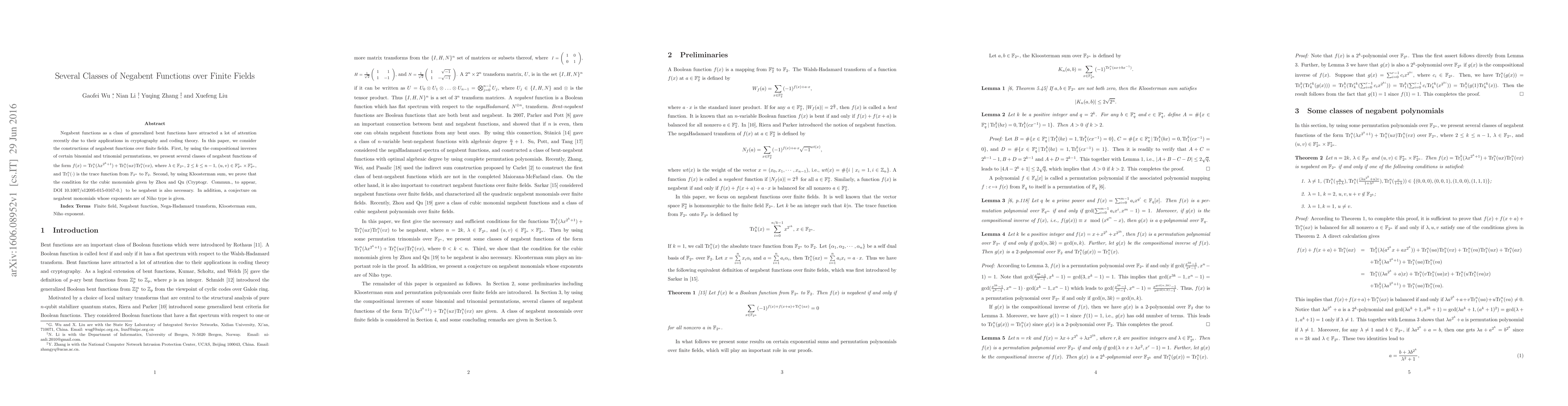 This paper constructs several classes of negabent functions over finite fields using compositional inverses and Kloosterman sums, and proves the necessity of certain conditions for cubic monomials to be negabent, while also proposing a conjecture regarding Niho-type exponents.