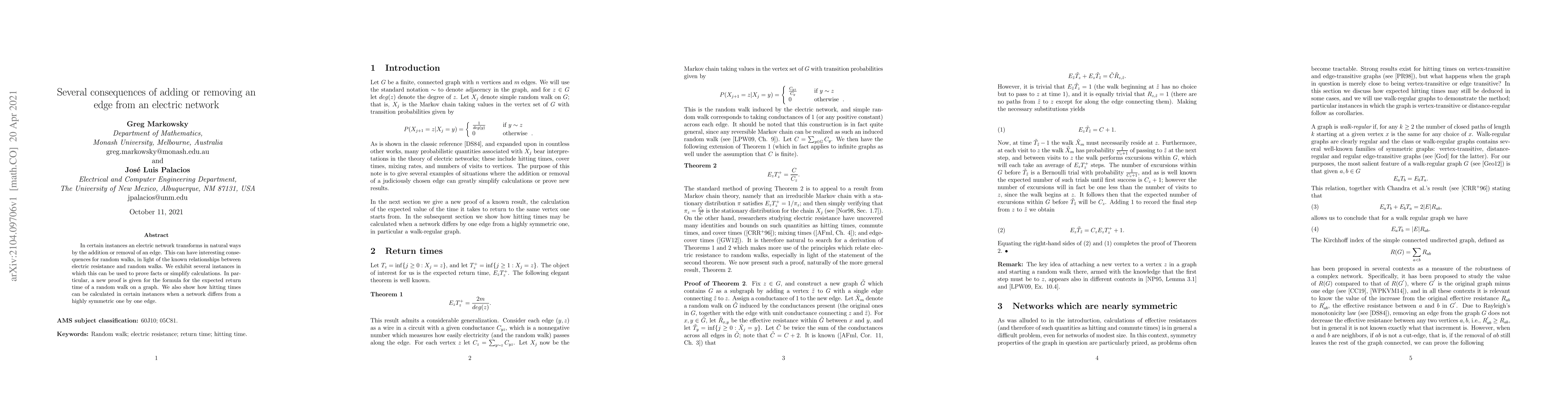 Researchers show how adding or removing edges from an electric network can simplify calculations for random walks and provide new insights into expected return times and hitting times.