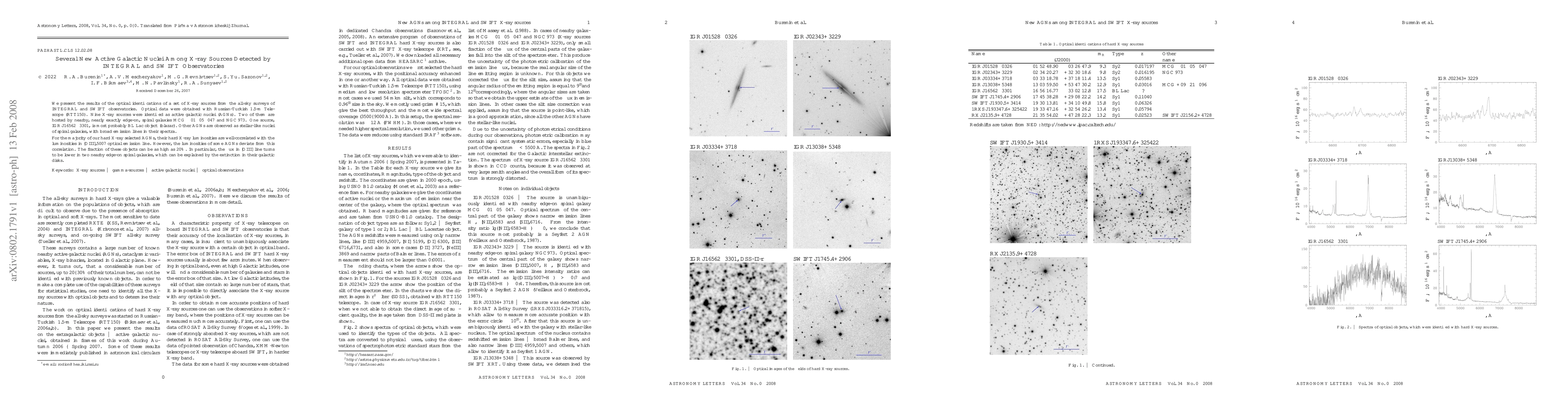 Researchers discovered 9 new active galactic nuclei among X-ray sources detected by INTEGRAL and SWIFT observatories, with some showing correlation between hard X-ray luminosity and optical emission line luminosity.