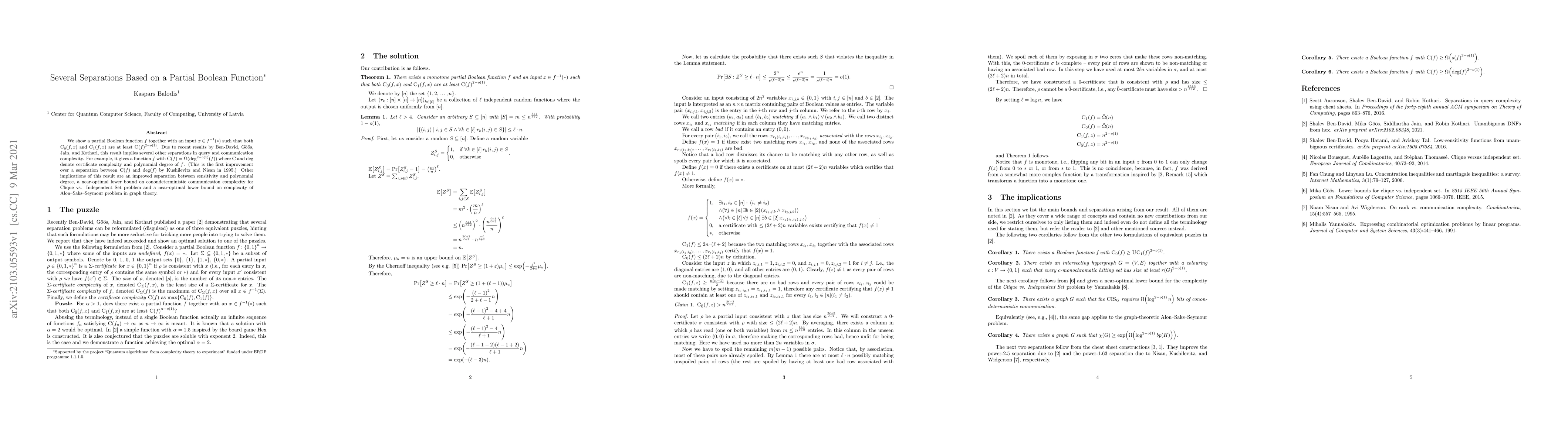 We show a partial Boolean function $f$ together with an input $x\in f^{-1}\left(*\right)$ such that both $C_{\bar{0}}\left(f,x\right)$ and $C_{\bar{1}}\left(f,x\right)$ are at least $C\left(f\right)^{2-o\left(1\right)}$. Due to recent results by Ben-David, G\"{o}\"{o}s, Jain, and Kothari, this result implies several other separations in query and communication complexity. For example, it gives a function $f$ with $C(f)=\Omega(deg^{2-o\left(1\right)}(f))$ where $C$ and $deg$ denote certificate complexity and polynomial degree of $f$. (This is the first improvement over a separation between $C(f)$ and $deg(f)$ by Kushilevitz and Nisan in 1995.) Other implications of this result are an improved separation between sensitivity and polynomial degree, a near-optimal lower bound on conondeterministic communication complexity for Clique vs. Independent Set problem and a near-optimal lower bound on complexity of Alon--Saks--Seymour problem in graph theory.