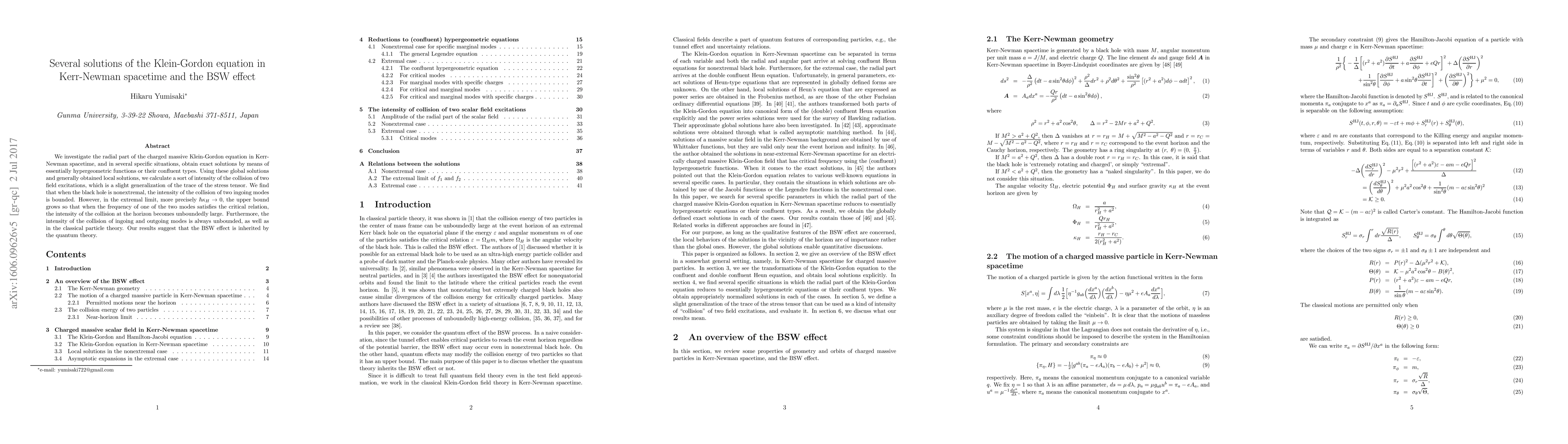 We investigate the radial part of the charged massive Klein-Gordon equation in Kerr-Newman spacetime, and in several specific situations, obtain exact solutions by means of essentially hypergeometric functions or their confluent types. Using these global solutions and generally obtained local solutions, we calculate a sort of intensity of the collision of two field excitations, which is a slight generalization of the trace of the stress tensor. We find that when the black hole is nonextremal, the intensity of the collision of two ingoing modes is bounded. However, in the extremal limit, more precisely $\hbar \kappa_H \rightarrow 0$, the upper bound grows so that when the frequency of one of the two modes satisfies the critical relation, the intensity of the collision at the horizon becomes unboundedly large. Furthermore, the intensity of the collision of ingoing and outgoing modes is always unbounded, as well as in the classical particle theory. Our results suggest that the BSW effect is inherited by the quantum theory.