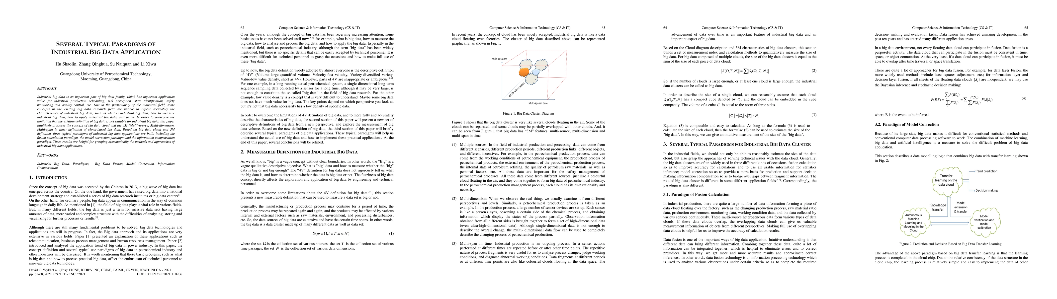 This paper proposes a new concept of big data cloud and 3M definition to better suit industrial big data needs, leading to three paradigms for industrial big data applications: fusion calculation, model correction, and information compensation.