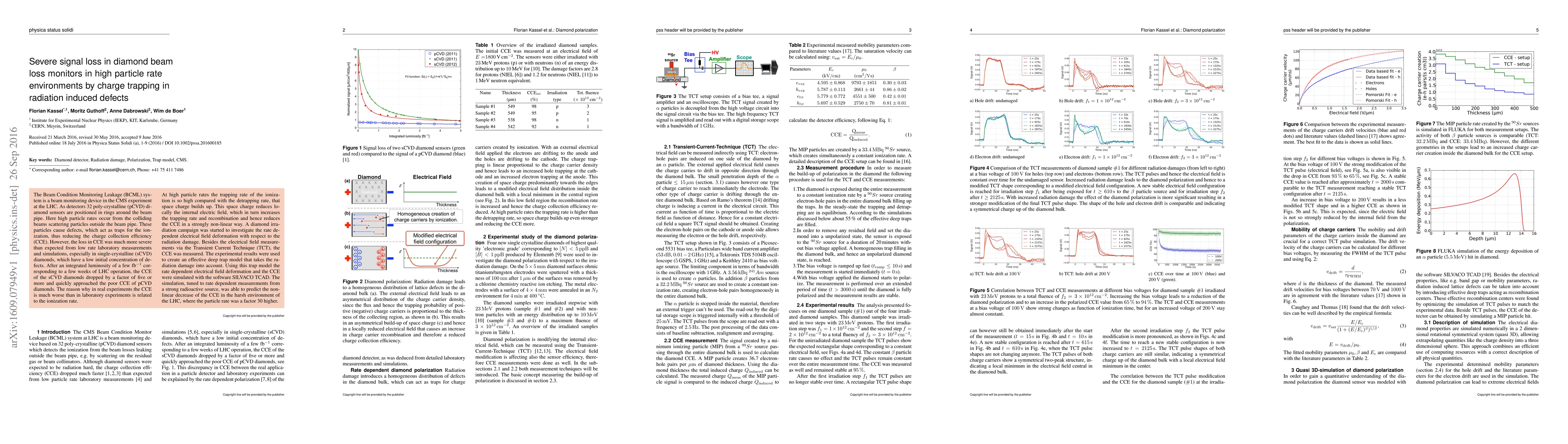 The research investigates severe signal loss in diamond beam loss monitors during high particle rate environments in the LHC, caused by charge trapping in radiation-induced defects. An experimental diamond irradiation campaign and simulations using SILVACO TCAD led to a model explaining the non-linear decrease in charge collection efficiency (CCE) due to space charge build-up from high trapping rates, which was successfully applied to predict signal loss in the LHC's harsher conditions.