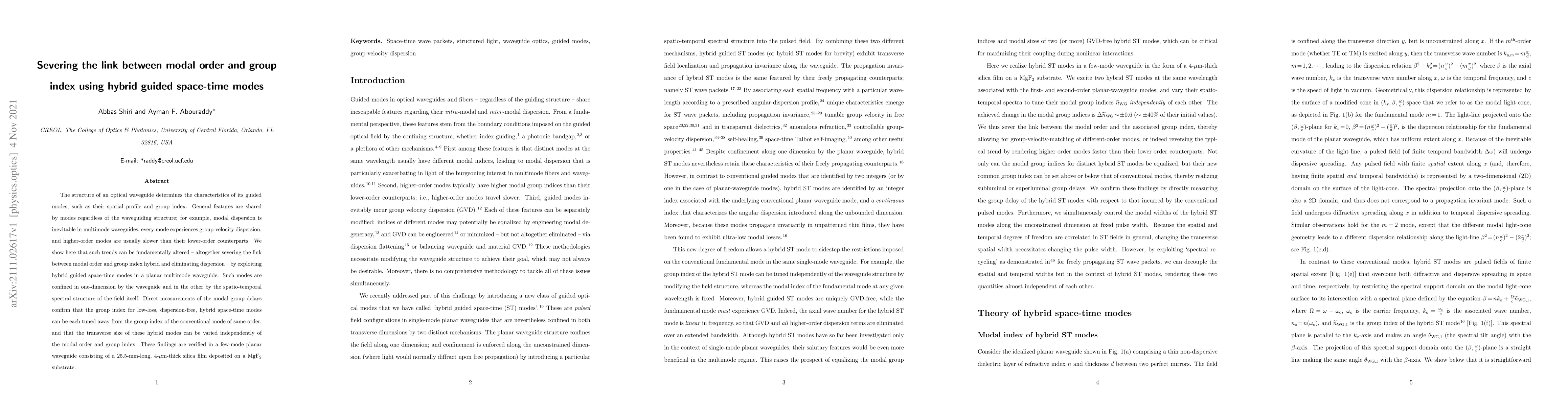 The structure of an optical waveguide determines the characteristics of its guided modes, such as their spatial profile and group index. General features are shared by modes regardless of the waveguiding structure; for example, modal dispersion is inevitable in multimode waveguides, every mode experiences group-velocity dispersion, and higher-order modes are usually slower than their lower-order counterparts. We show here that such trends can be fundamentally altered -- altogether severing the link between modal order and group index hybrid and eliminating dispersion -- by exploiting hybrid guided space-time modes in a planar multimode waveguide. Such modes are confined in one-dimension by the waveguide and in the other by the spatio-temporal spectral structure of the field itself. Direct measurements of the modal group delays confirm that the group index for low-loss, dispersion-free, hybrid space-time modes can be each tuned away from the group index of the conventional mode of same order, and that the transverse size of these hybrid modes can be varied independently of the modal order and group index. These findings are verified in a few-mode planar waveguide consisting of a 25.5-mm-long, 4-$\mu$m-thick silica film deposited on a MgF$_2$ substrate.