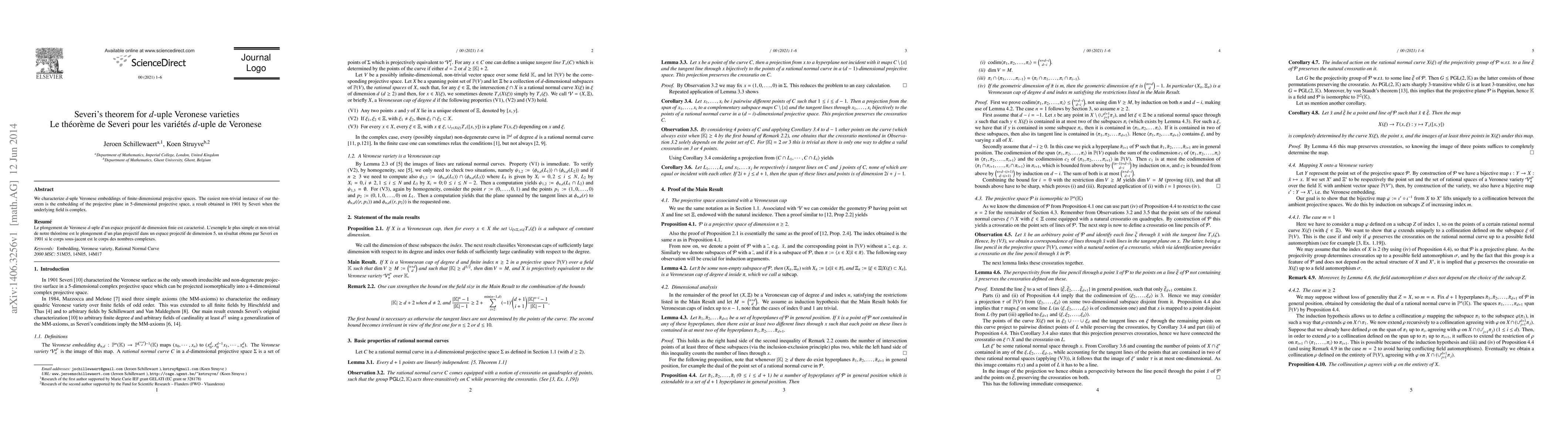 Summary: This paper characterizes $d$-uple Veronese embeddings of projective spaces, extending Severi's 1901 theorem for the projective plane embedded in 5-dimensional space to general finite-dimensional cases. The focus is on understanding the geometric properties of these embeddings.