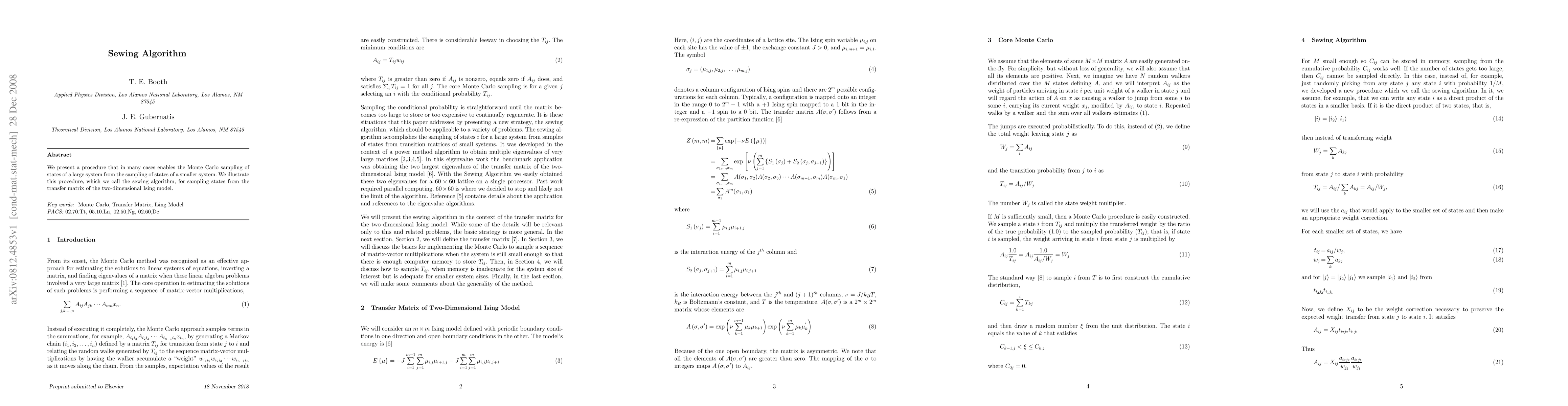 We present a procedure that in many cases enables the Monte Carlo sampling of states of a large system from the sampling of states of a smaller system. We illustrate this procedure, which we call the sewing algorithm, for sampling states from the transfer matrix of the two-dimensional Ising model.