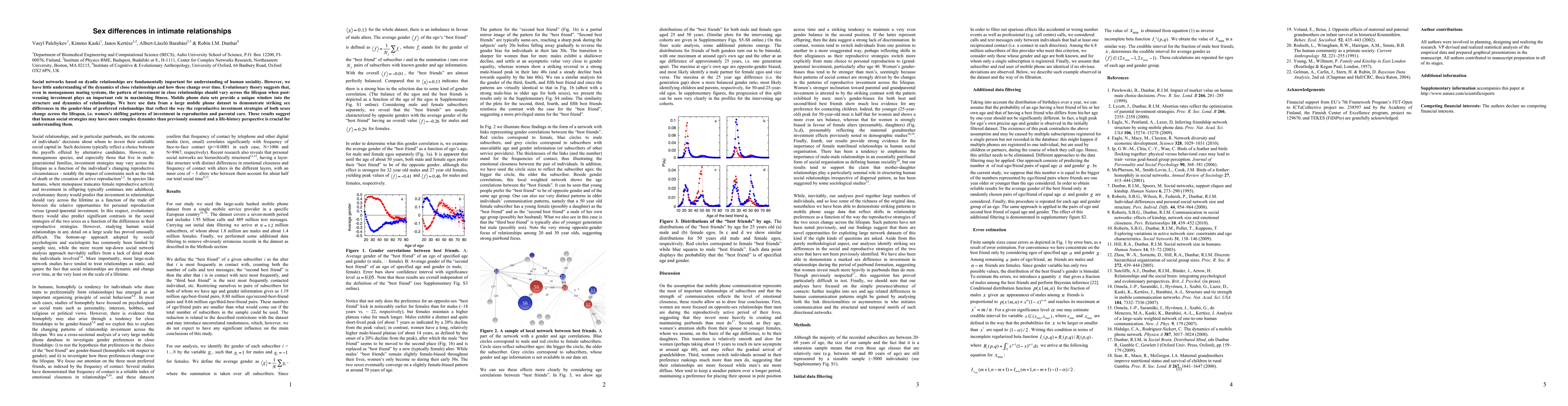 A study using mobile phone data shows that men and women have different patterns of investment in relationships throughout their lives, reflecting shifting reproductive strategies across the lifespan. These findings suggest that human social dynamics may be more complex than previously thought.