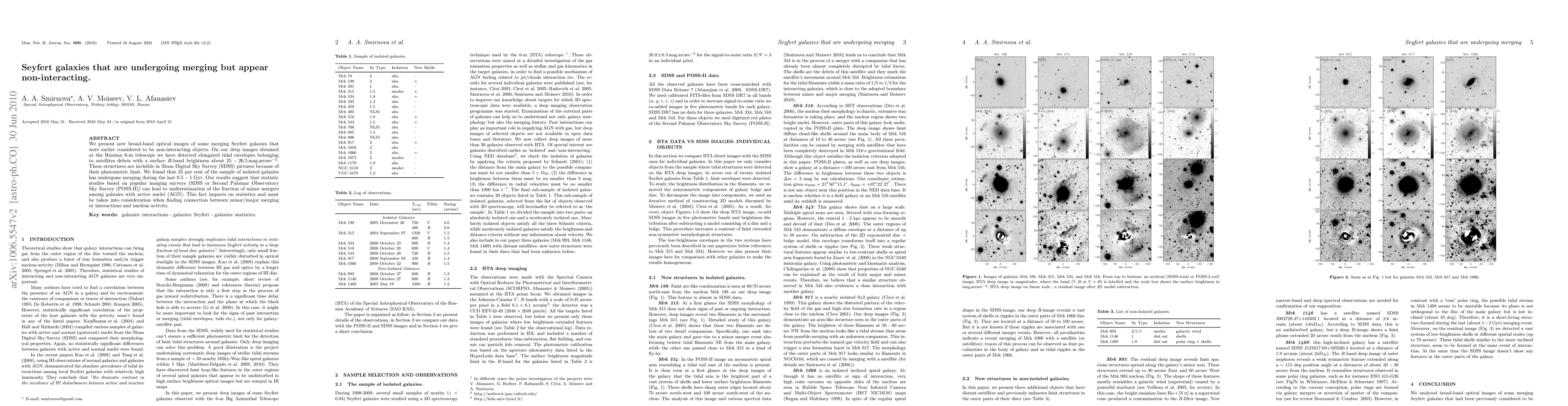 We present new broad-band optical images of some merging Seyfert galaxies that were earlier considered to be non-interacting objects. On our deep images obtained at the Russian 6-m telescope we have detected elongated tidal envelopes belonging to satellites debris with a surface R-band brightness about 25-26.5 mag/arcsec^2. These structures are invisible in Sloan Digital Sky Survey (SDSS) pictures because of their photometric limit. We found that 35 per cent of the sample of isolated galaxies has undergone merging during the last 0.5-1 Gyr. Our results suggest that statistic studies based on popular imaging surveys (SDSS or Second Palomar Observatory Sky Survey (POSS-II)) can lead to underestimation of the fraction of minor mergers among galaxies with active nuclei (AGN). This fact impacts on statistics and must be taken into consideration when finding connection between minor/major merging or interactions and nucleus activity.