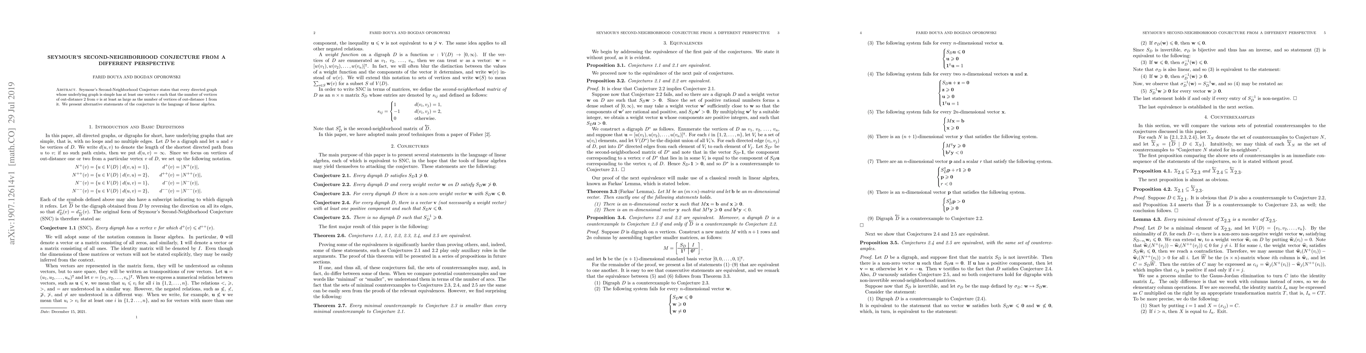 This research reinterprets Seymour's Second-Neighborhood Conjecture using linear algebra, proposing alternative statements of the conjecture that every simple directed graph has a vertex whose out-neighbors of out-distance 2 are at least as numerous as its direct out-neighbors.
