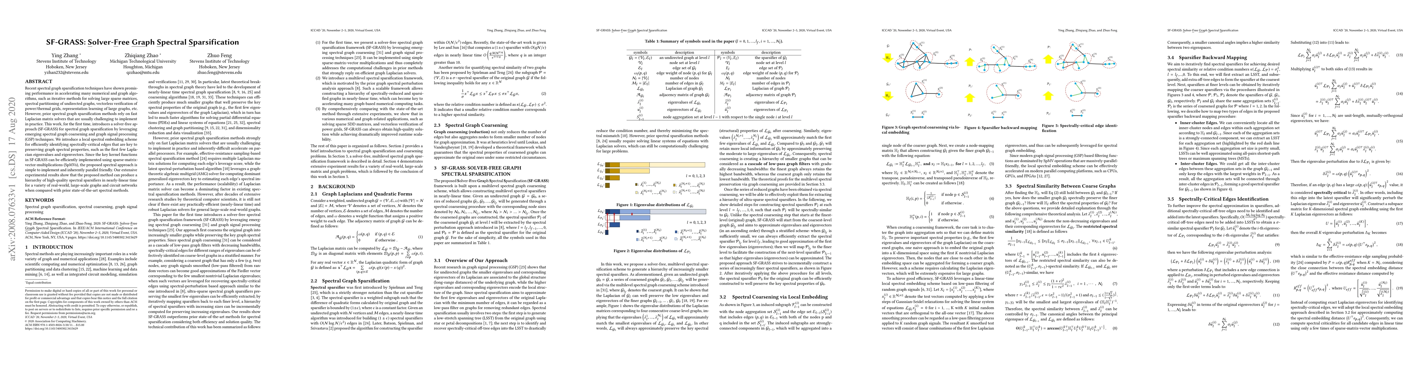 SF-GRASS offers a solver-free spectral graph sparsification technique that leverages spectral coarsening and graph signal processing, efficiently identifying critical edges while avoiding complex Laplacian solvers. The approach is simple to implement, parallel-friendly, and achieves nearly-linear time performance for large-scale graphs.