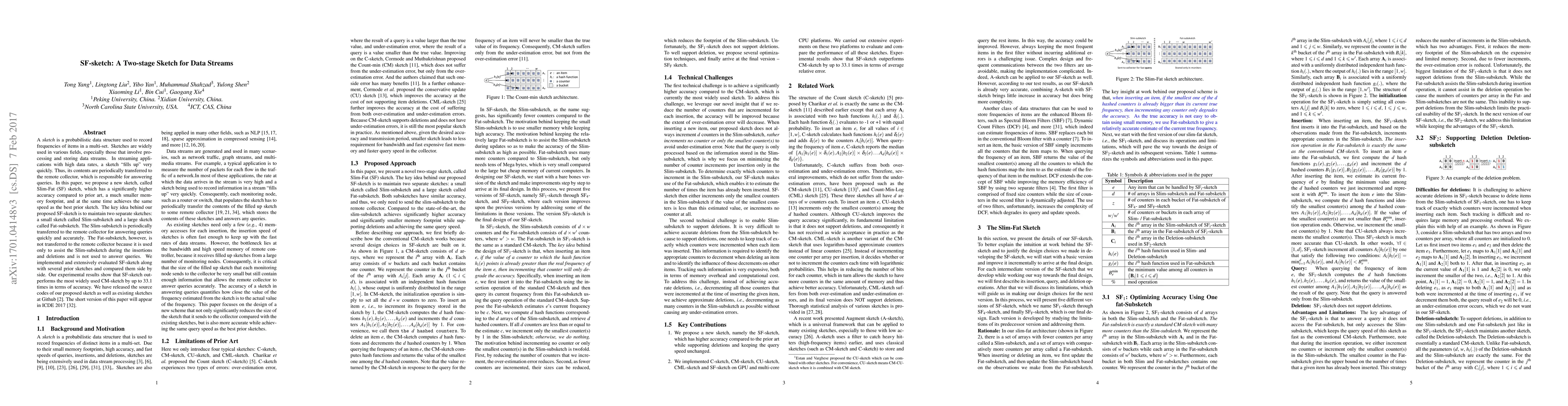 The paper proposes the Slim-Fat (SF) sketch, a two-stage probabilistic data structure for high-speed data streams, achieving significantly higher accuracy and a smaller memory footprint compared to prior sketches like the CM-sketch, while maintaining comparable processing speed. The SF-sketch uses a Slim-subsketch for query responses and a Fat-subsketch for local operations, resulting in substantial accuracy improvements.