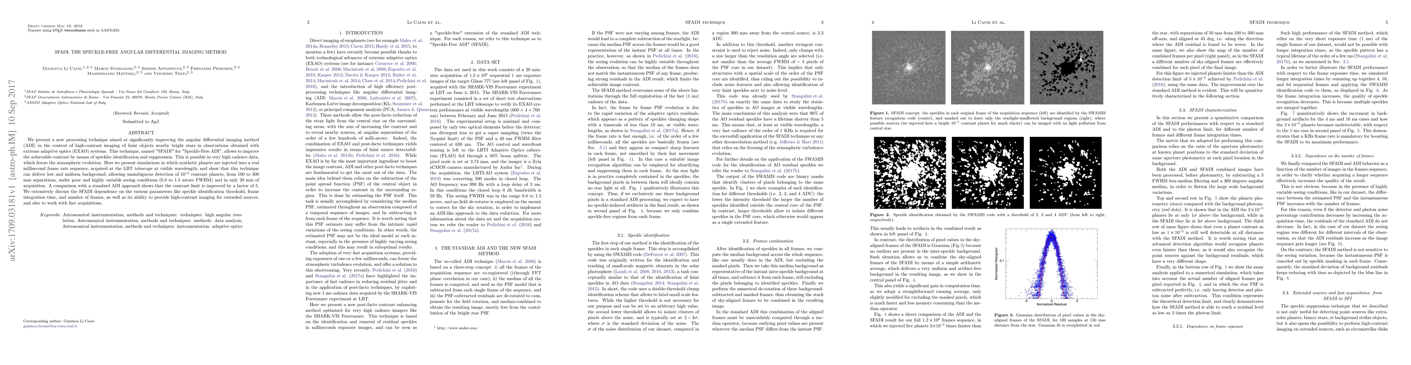 A new imaging technique called SFADI improves contrast in high-contrast observations of faint objects near bright stars, detecting planets with $10^{-5}$ contrast at 100-300 mas separations.