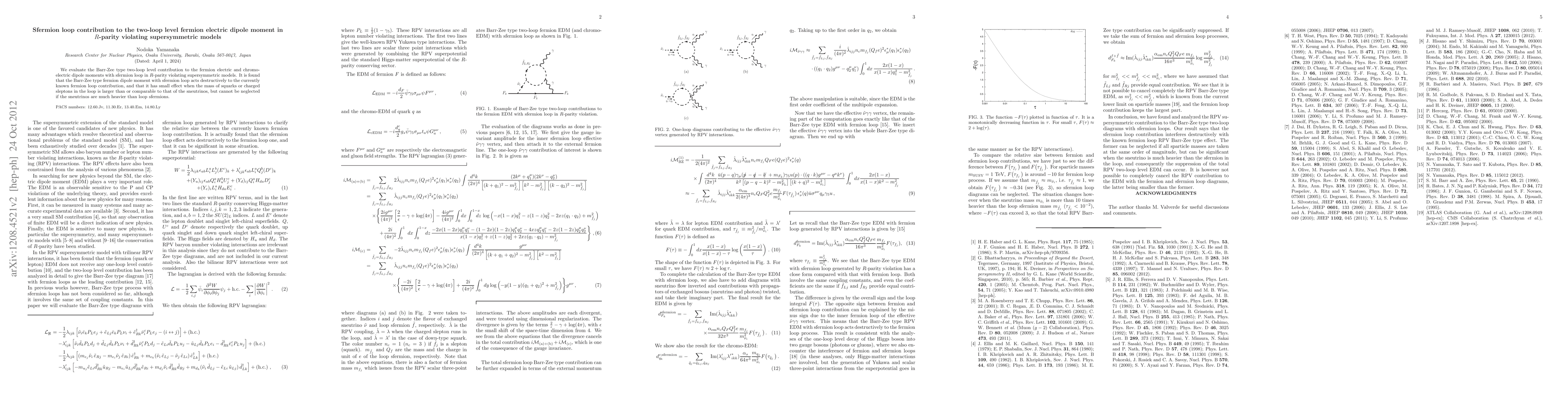 This paper evaluates the two-loop Barr-Zee type contribution to fermion electric dipole moments in R-parity violating supersymmetric models, finding that sfermion loops act destructively against the known fermion loop contribution, especially when sneutrinos are significantly heavier than other sfermions.