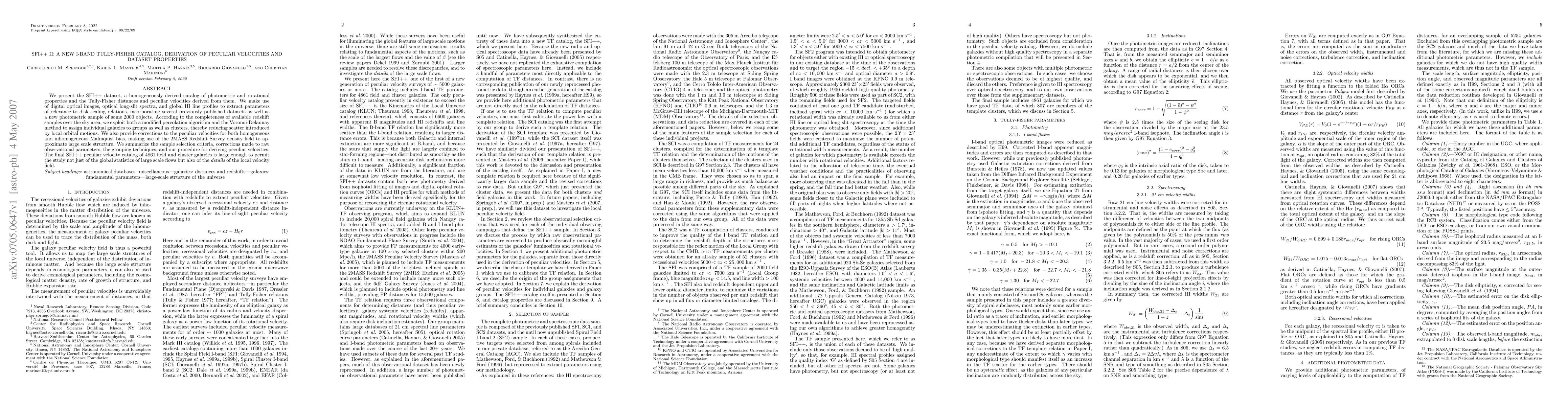 The SFI++ dataset provides a new I-band Tully-Fisher catalog with photometric and rotational properties, derived distances, and peculiar velocities for 4861 galaxies, employing advanced grouping techniques and corrections for observational biases. This comprehensive catalog enables detailed studies of both global large-scale flows and local velocity fields.