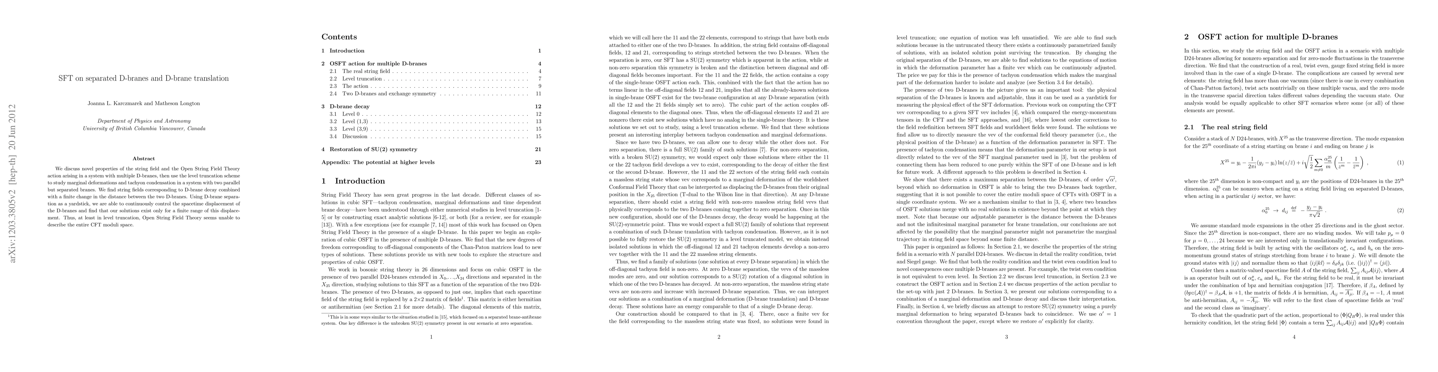 The paper presents a detailed analysis of string fields in OSFT for separated D-branes, identifying new string field configurations and demonstrating the limitations of level truncation in describing the full CFT moduli space.