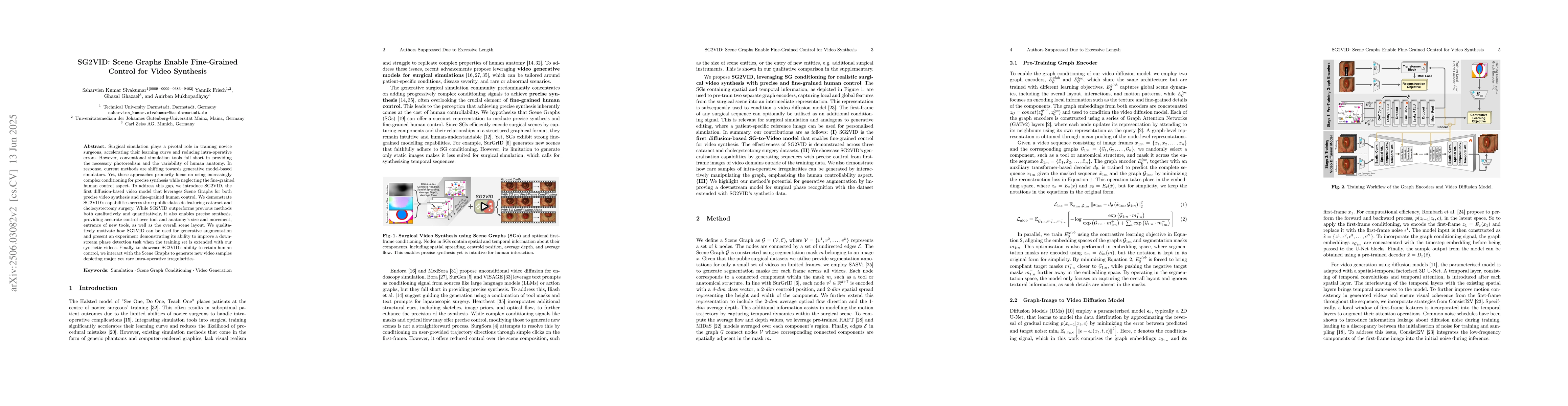 The research introduces SG2VID, a diffusion-based video model that utilizes Scene Graphs for precise video synthesis and fine-grained human control in surgical simulation, demonstrated across cataract and cholecystectomy datasets.