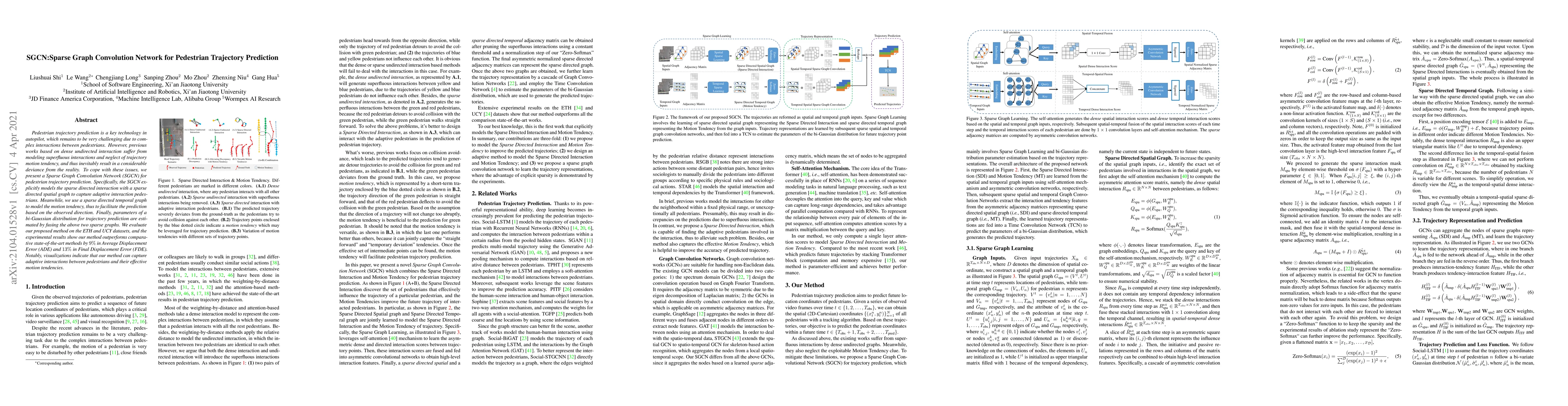 The SGCN model proposes a sparse graph convolution network to improve pedestrian trajectory prediction by modeling sparse directed interactions and motion tendencies, achieving superior performance over state-of-the-art methods on ETH and UCY datasets. Visualizations show the model effectively captures adaptive pedestrian interactions and motion tendencies.
