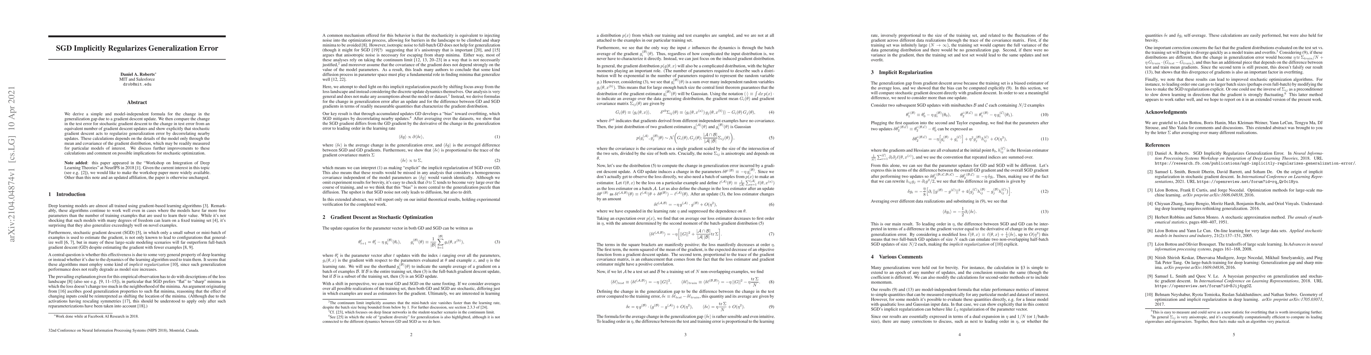 This paper derives a formula to quantify how gradient descent updates affect generalization error and shows that stochastic gradient descent implicitly regularizes by decorrelating updates, relying only on the mean and covariance of the gradient distribution. The findings suggest potential implications for improving stochastic optimization techniques.