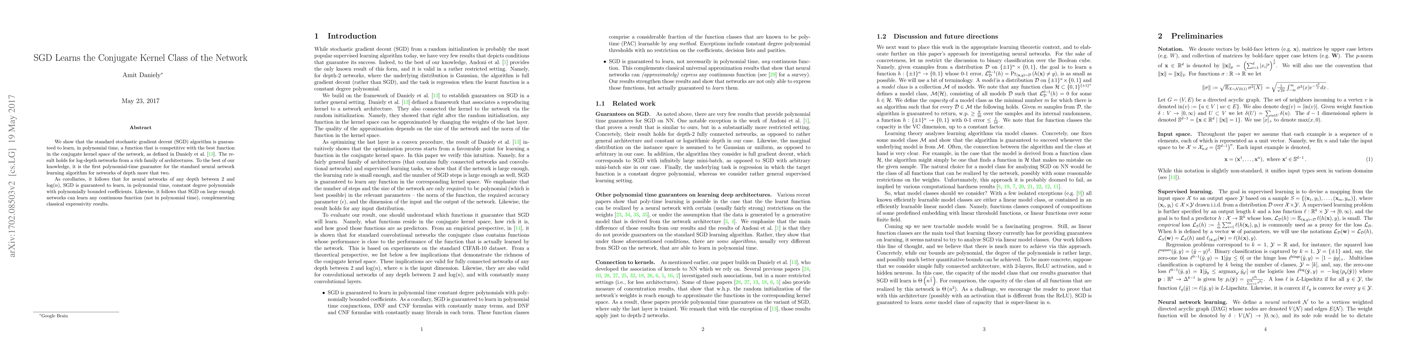 The paper shows that stochastic gradient descent can learn a function competitive with the best function in a network's conjugate kernel space, with polynomial-time guarantees for networks of depth more than two.