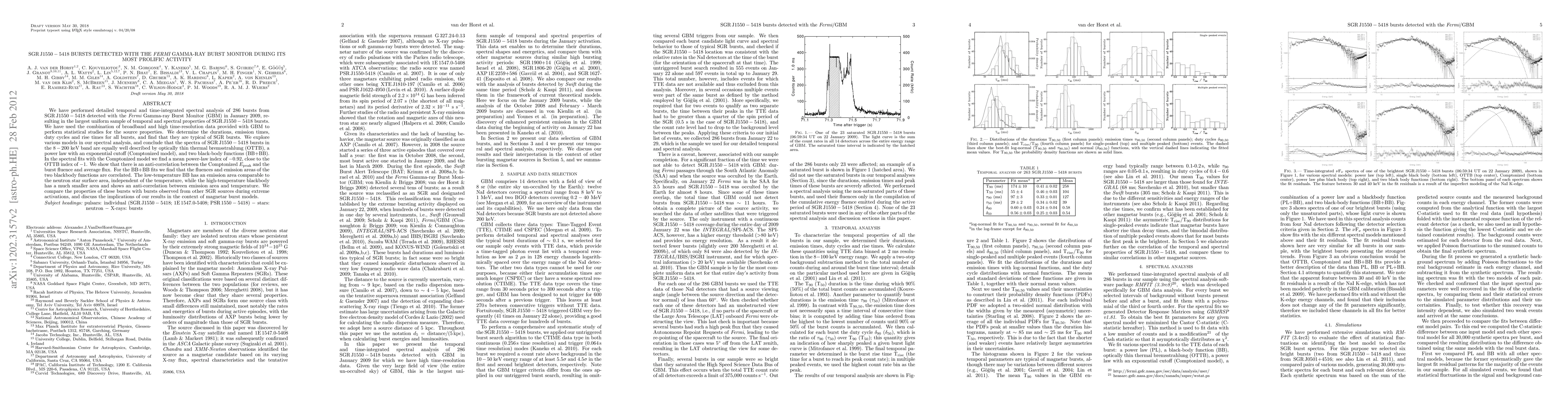 A team of scientists analyzed 286 bursts from the SGR J1550-5418 source using Fermi Gamma-ray Burst Monitor data, finding typical burst properties and three models that equally well describe the spectral characteristics: optically thin thermal bremsstrahlung, Comptonized model with a power-law index, and two black-body functions.