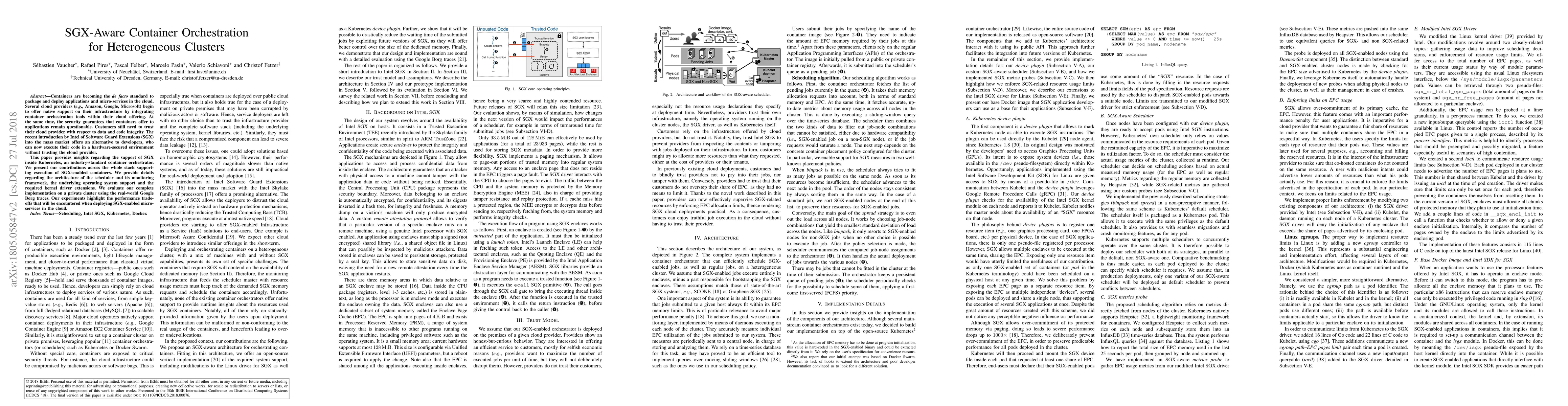 This paper explores integrating Intel's Software Guard Extensions (SGX) into Kubernetes to enable secure container orchestration. It details the architecture, monitoring, OS support, and kernel extensions required for SGX-enabled containers, and evaluates performance trade-offs using real-world data.