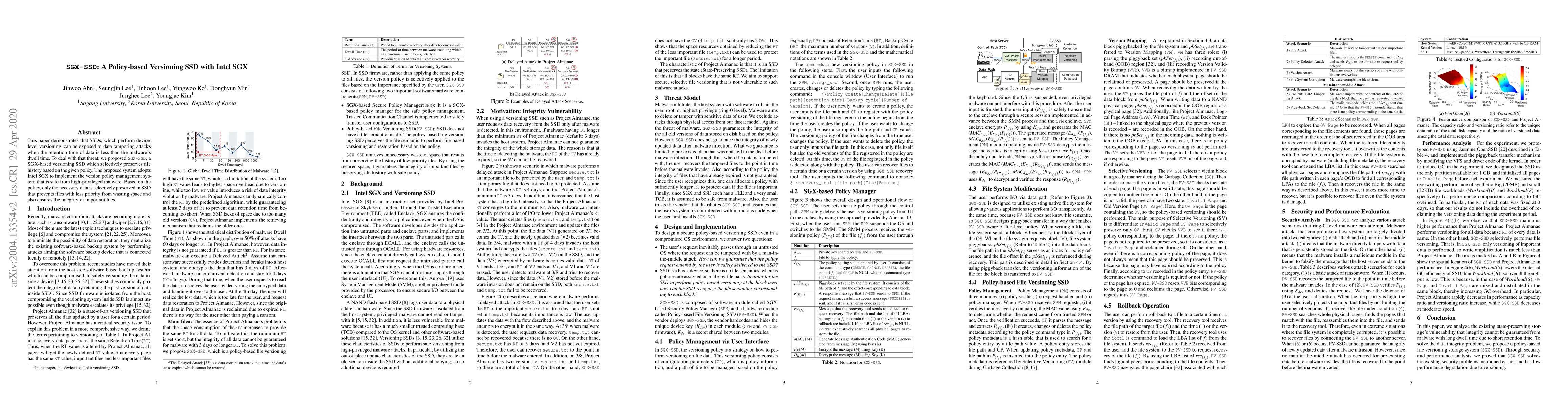 The paper introduces SGX-SSD, an Intel SGX-based versioning SSD that selectively preserves file history according to user-defined policies to protect against data tampering, ensuring the integrity of important files while optimizing storage. This system mitigates risks associated with malware by safeguarding version policy management from high-privileged threats.